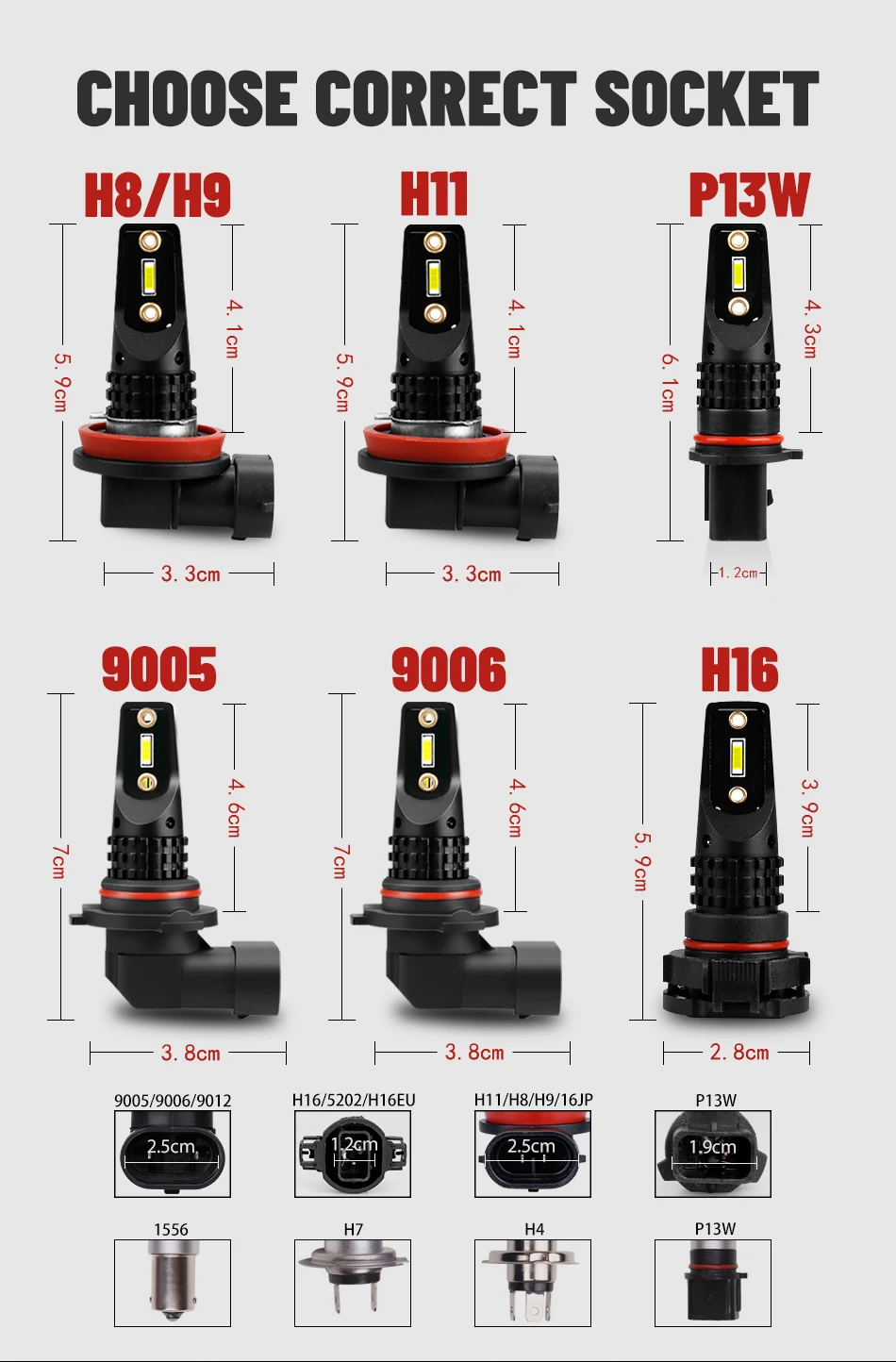 Светодиодные лампы H11 H4 H7 Canbus 6000K, белые диоды H8 H16JP 900...