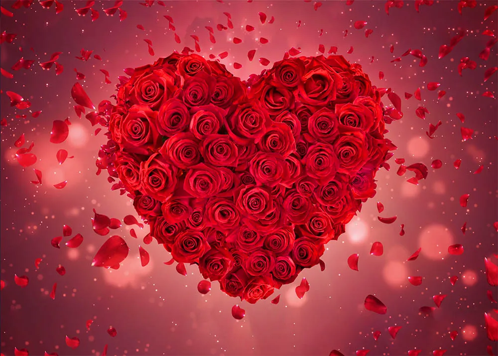 Фон для фотосъемки с изображением валентинки, красной розы и медведя