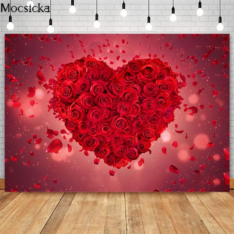 Mocsicka День Святого Валентина красная роза любовь сердце фотография фоны Свадьба невесты душ фото реквизит фон для студийной будки