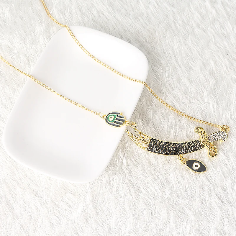 RJ Турция сглаза ожерелье Имам Али Ретро Золотой Меч Хамса рука Фатима Захра кулон цепочка косплей ювелирные изделия подарок