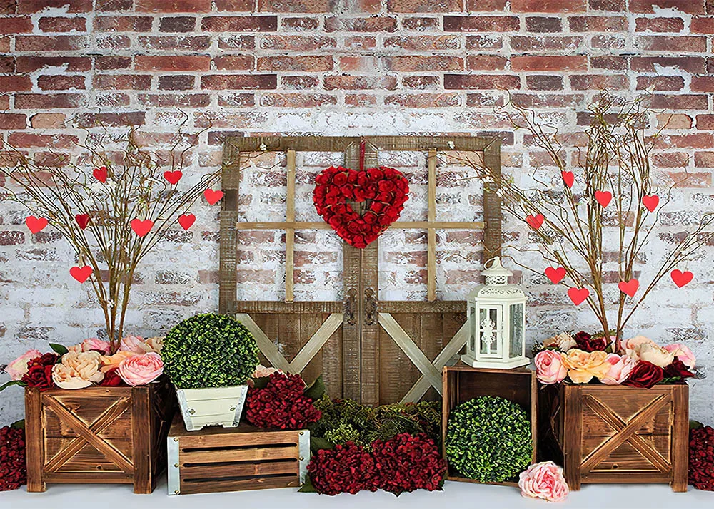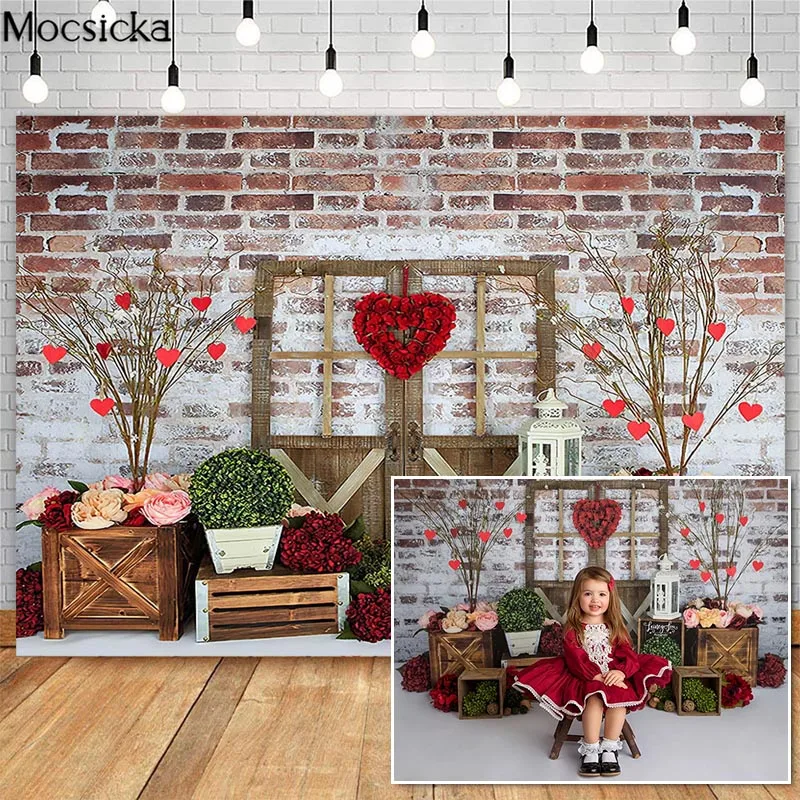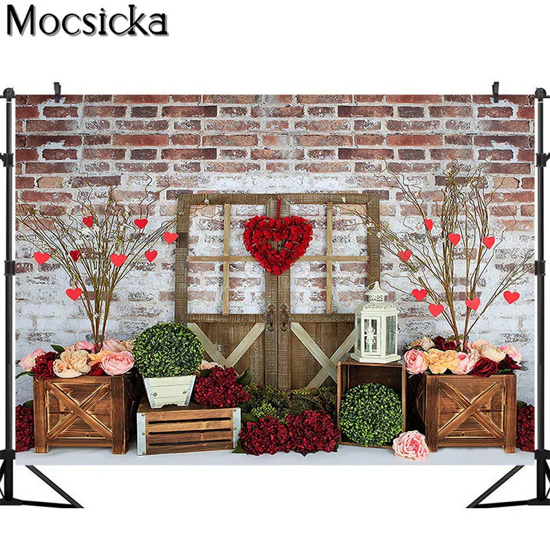 Mocsicka День Святого Валентина торт разбивать фотографии фоны красная кирпичная стена розы Сад фото реквизит Студия Стенд фон