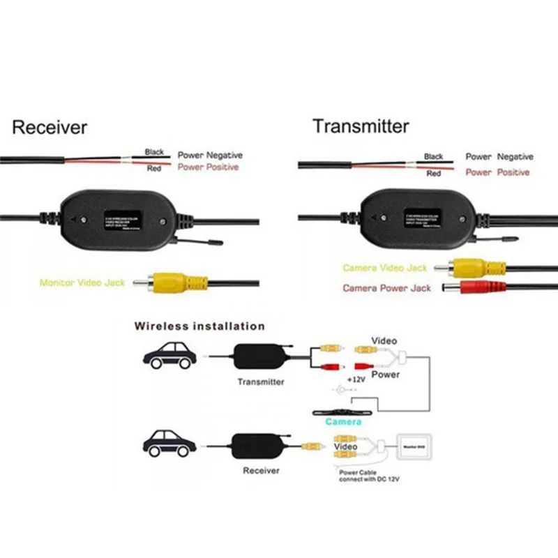 Описание товараЭтот универсальный 2,4G беспроводной цветной видеопередатчик и приемник-лучший выбор для вашей камеры заднего вида автомобиля (только 12 В), если вам не нравится скрывать видео кабель от заднего до переднего. С этим продуктом, всей системе не нужен длинный видео кабель, видео сигнал от камеры будет преобразован в TFT ЖК-дисплей монитор 2,4G беспроводной. Это действительно очень удобно для установки резервной камеры и монитора.Особенности продукта2,4G беспроводной RCA видео передатчик и приемник комплект для 12V камеры заднего вида автомобиля.Идеально преобразует проводную камеру заднего вида в беспроводную, позволяет избежать сложного подключения, чтобы использоваться с автомобильным монитором, головным устройством, dvd-плеером и камерой и т. д.150 м Ttransmission приемная дистанция (открытое пространство), подходит для всех 12 в больших транспортных средств, небольших грузовиков, автомобилей, фургонов и RVs и т. Д.AV вход/выход: PAL/NTSC композитный видео сигнал, RCA Джек.Как использоватьПросто Подключите камеру заднего вида с беспроводным передатчиком, желтым соединителем к видеоразъему камеры, провод питания подключается к резервному светильник, что приводит к положительному свинцу, отрицательному свинцу.Подключите ЖК-монитор с беспроводным приемником, желтый соединитель подключается к видео соединителю монитора, красный соединитель к разъему питания монитора, для остальных проводов питания беспроводного приемника, вы можете подключить его к обратной цепи в коробке предохранителей или в любом месте с мощностью 12 В.Посылка в комплекте1 беспроводной передатчик 2,4G.1 беспроводной приемник 2,4G.1 x Руководство пользователя.
