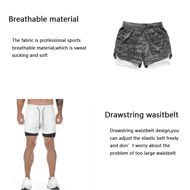 Мужские камуфляжные шорты для тренировок 2 в 1, двухуровневые быстр...