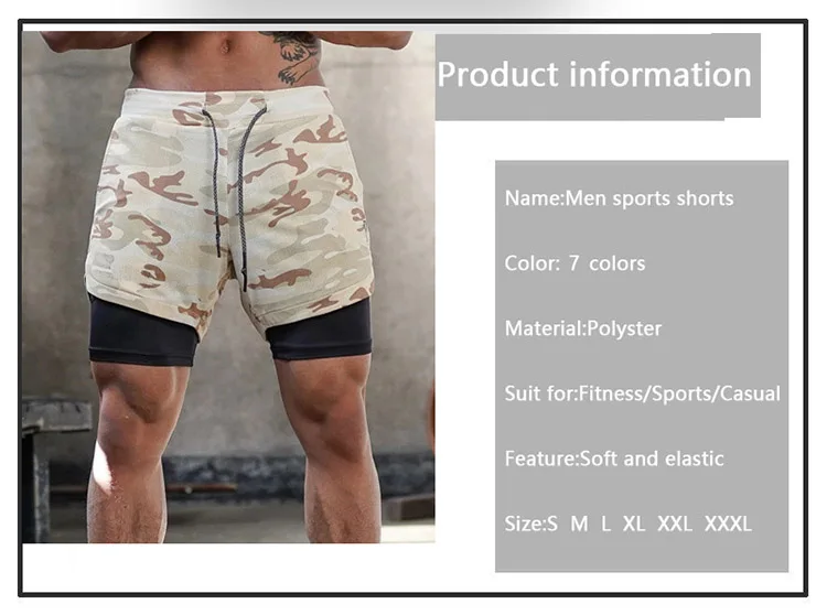 Новинка 2021, камуфляжные шорты для бега, мужские двухслойные быстр...
