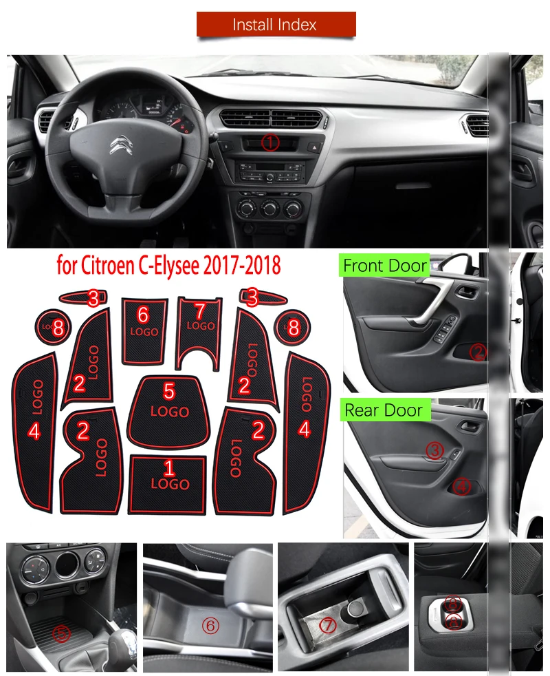 Противоскользящий резиновый коврик для чашки, дверной паз, коврик для Citroen C-Elysee 2017 2018 C Elysee CElysee, аксессуары для лица, коврик для телефона