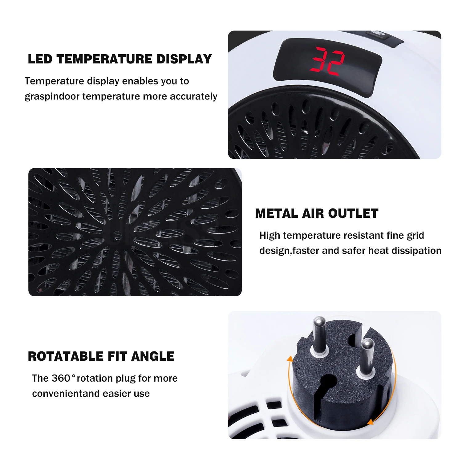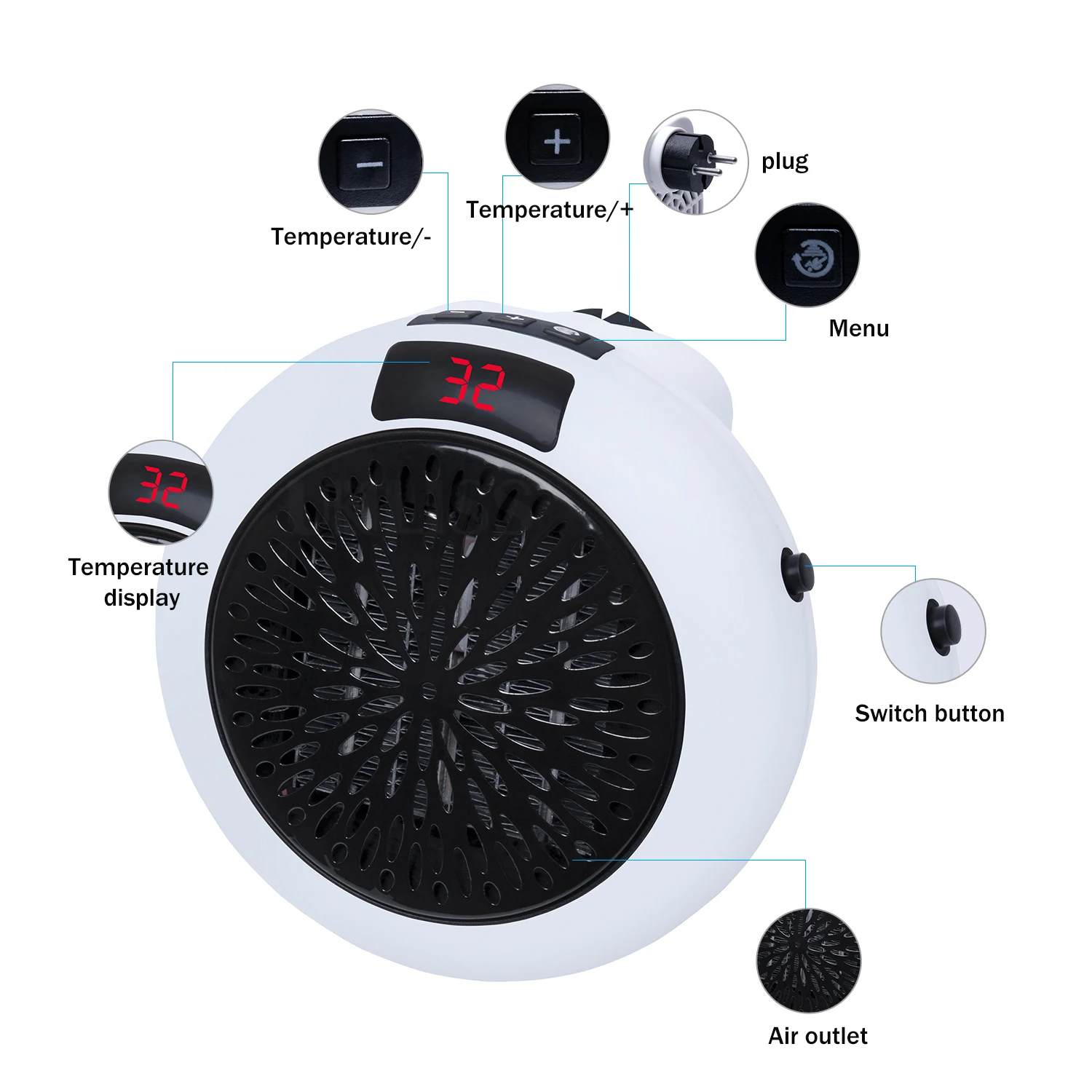 Портативный электрический обогреватель 500 Вт, безопасный тихий керамический вентилятор-обогреватель, вилка, подогреватель воздуха, настенный светодиодный обогреватель, 220 В, обогреватель