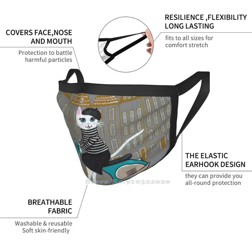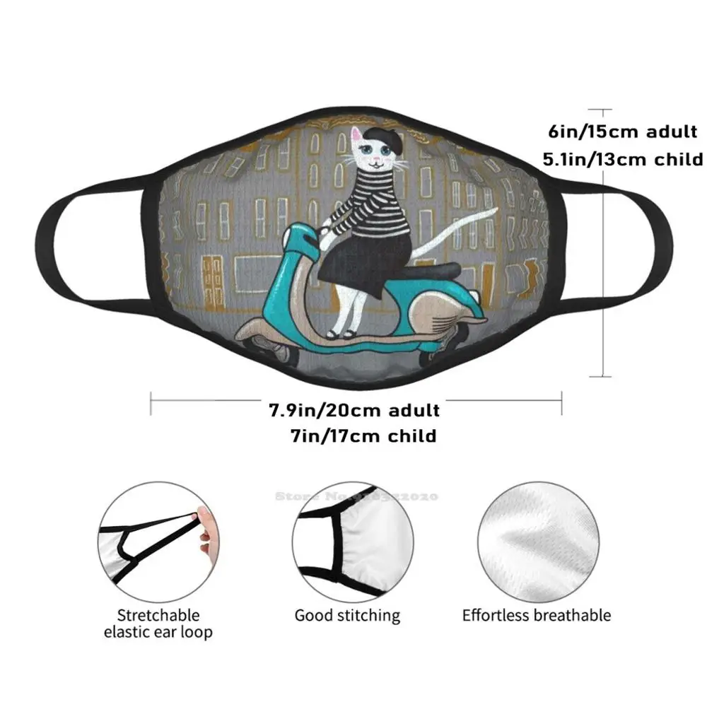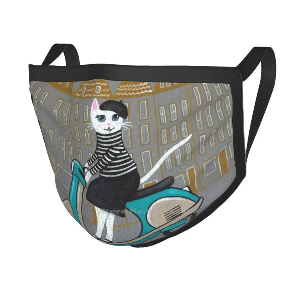 Пыленепроницаемая наружная маска Клэр-де-Луне в Париже, оригинальная маска для рта с кошкой, фольклорное искусство, причудливый Парижский скутер, Белый Кот, французский