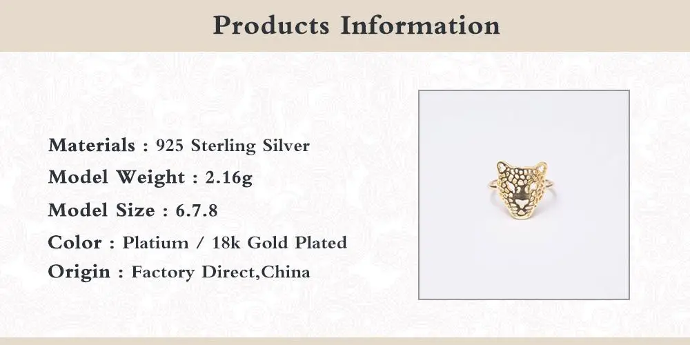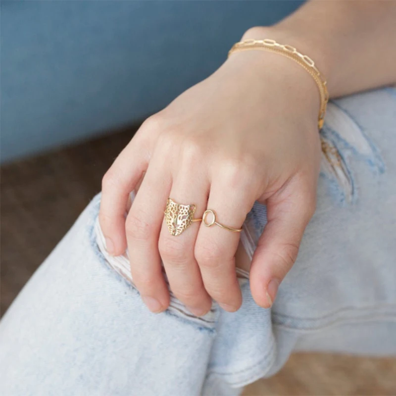 Кольцо мужскоеженское, золотистое, с головой леопарда