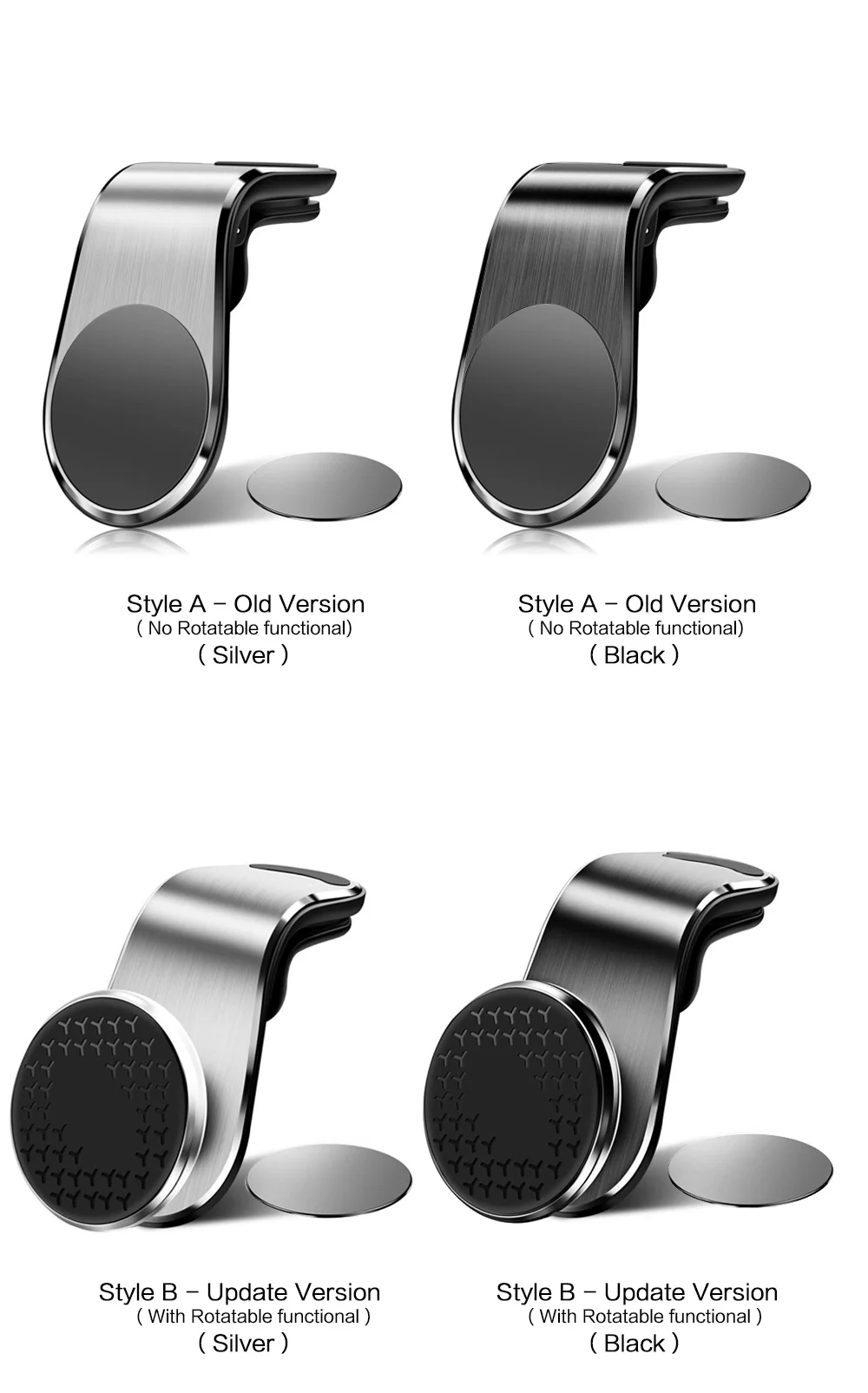 Отлично. Отлично. Вентиляционная решетка хорошо зацепляется. Единственное, что из-за веса сетка отваливается, но моя машина достаточно высока. Магнит идеально сочетается с чехлом моего телефона, так как он вращается в очень разумном углу, и у него есть Кепка, чтобы, если у вас нет магнита, вы можете приклеить его к корпусу и работать с таким крючком.