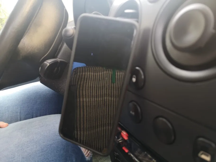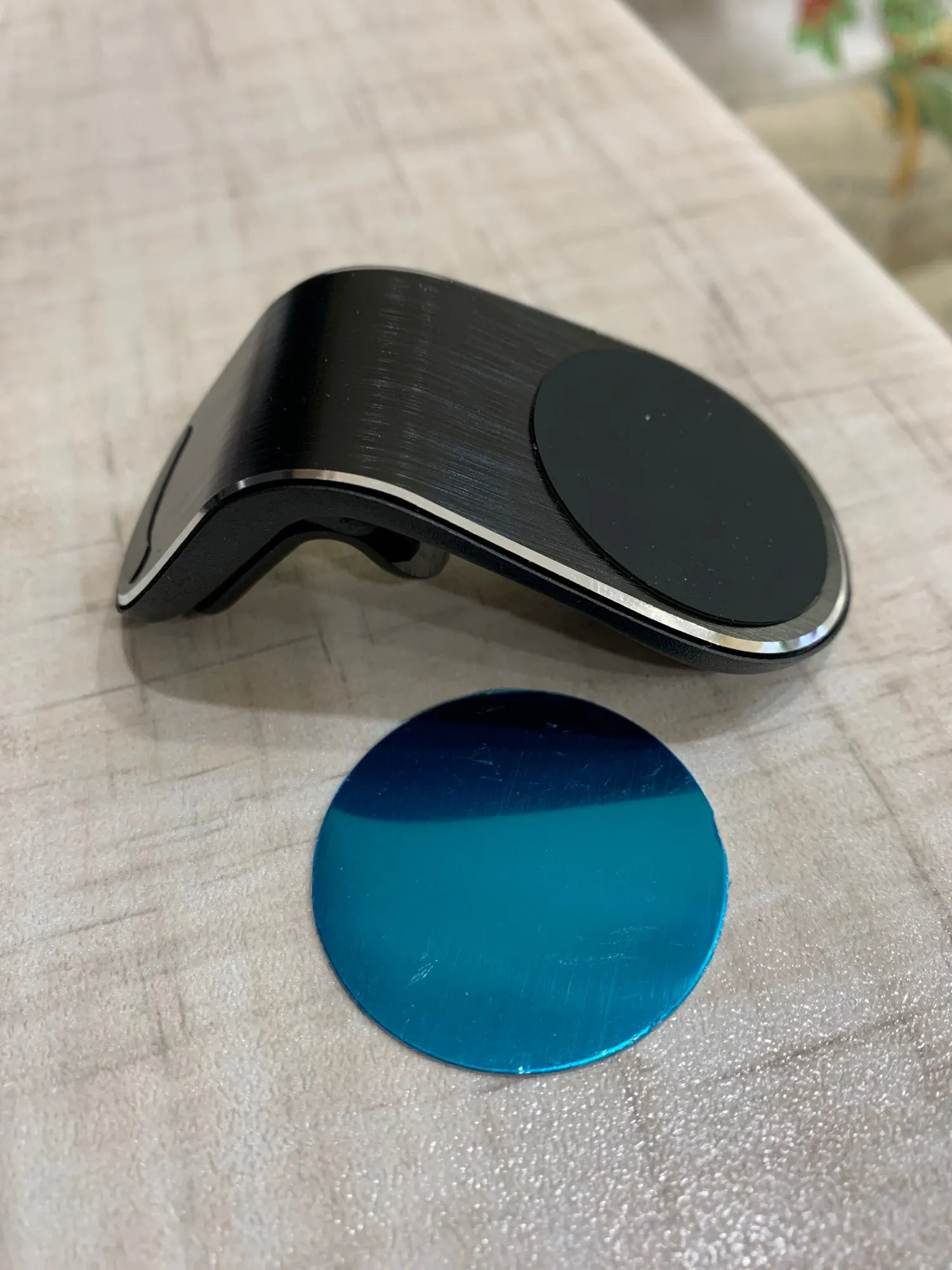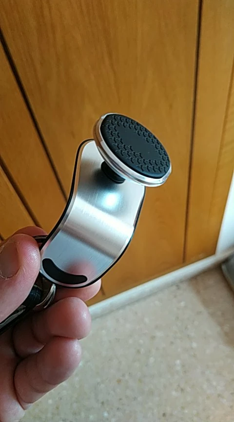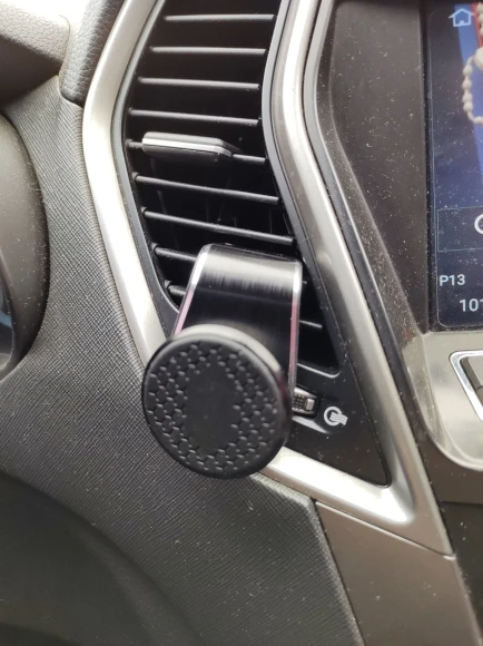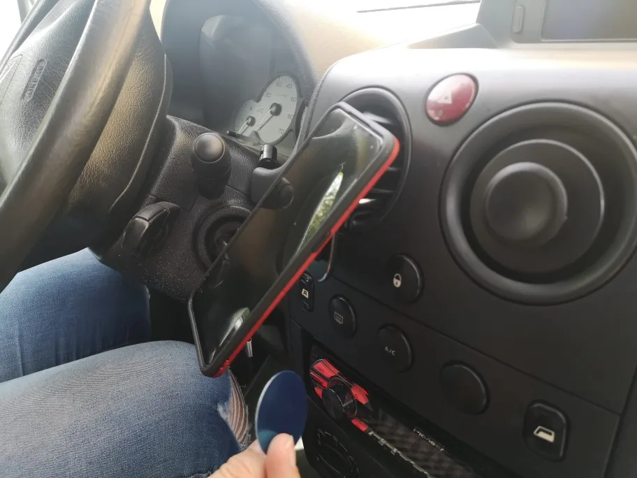 Опора правильно зажимается на одном из аэраторов моей машины. Я проскользнул магнит, наклейку между оболочкой и телефоном, это никель!!!