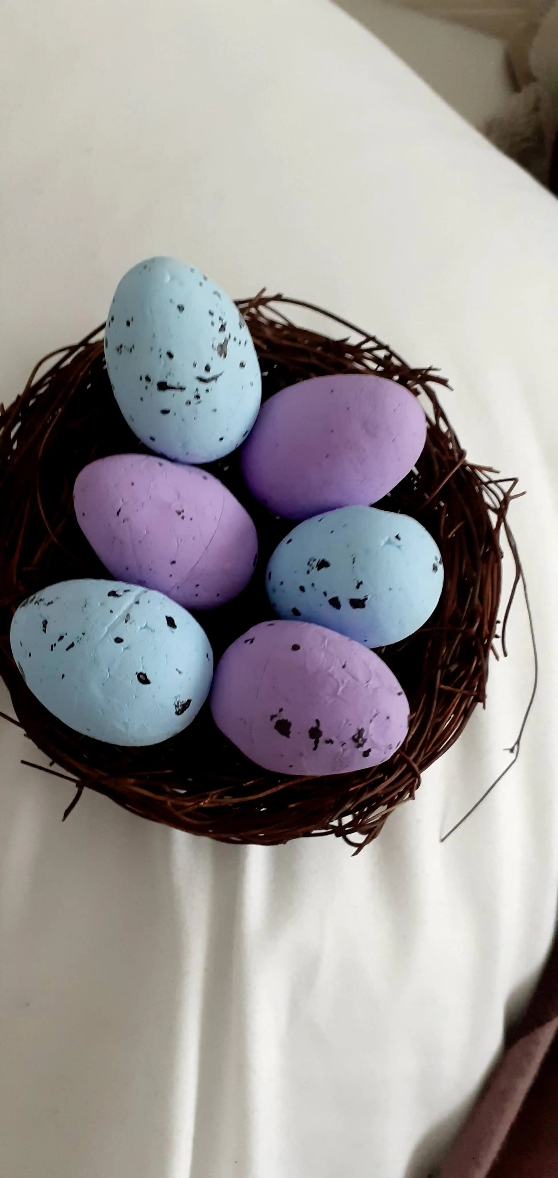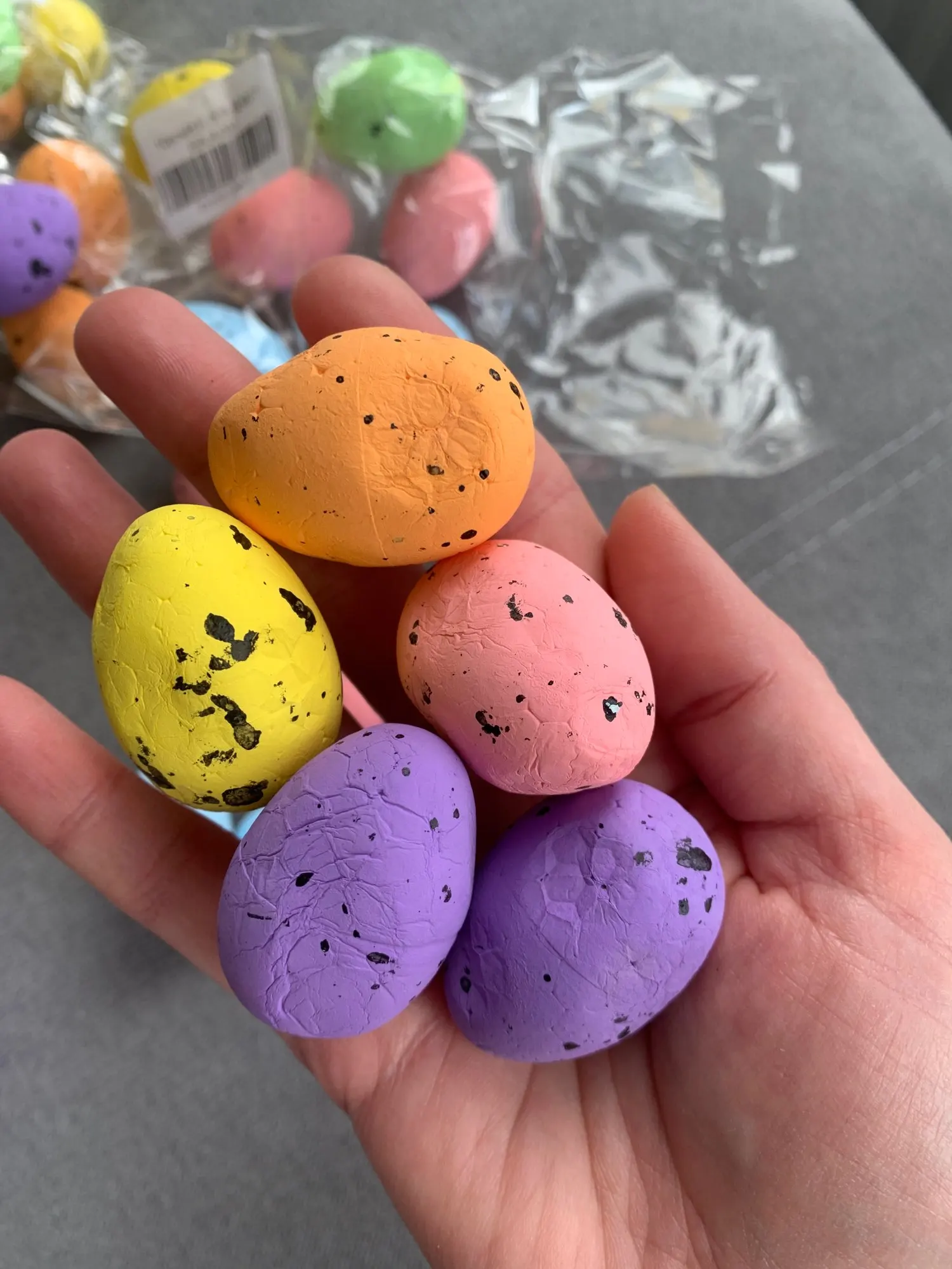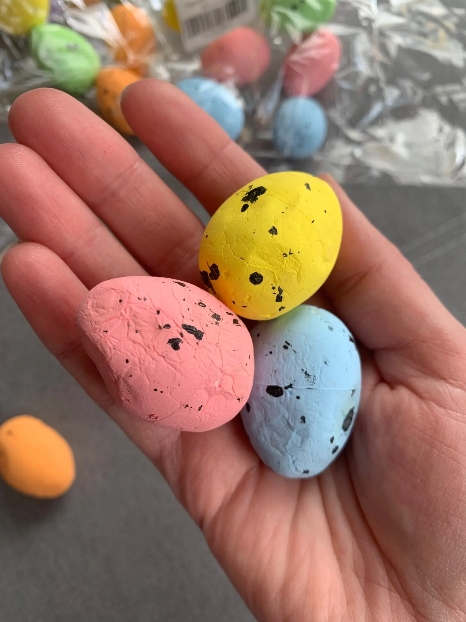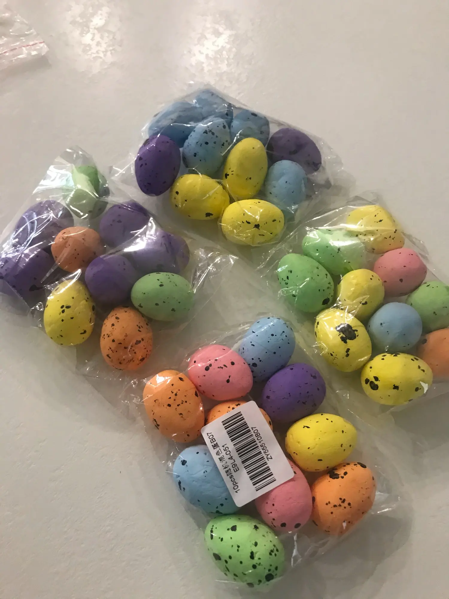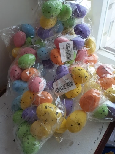 Это маленькие яички из окрашенного полистирола. Очень хорошо для пасхального украшения.