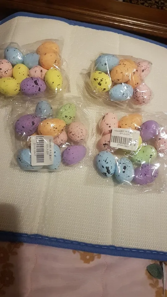 замечательные яйца. размер 4×3. приятные цвета. упаковано в обычный пакет, но пришло все без повреждений. рекомендую к покупке.