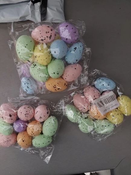 Яйца пасхальные соответствуют описанию. Доставка быстрая. количество совпадает. Но качество пересылки плохое. упакован в обычный пакет, много деформированных и с вмятинами. Заказывала яйца меньшего размера в другом магазине и из прислали в защитной пленке и все целые. Эти же, почти половину нужно выбросить. Продавец экономит на упаковке товара!!!!