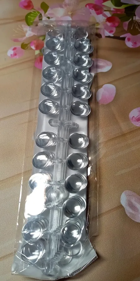 Я, как говорит моя подруга, лакоманьячка. Хранятся мои декоративные лаки для ногтей в шуфляде (стоят там как солдатики). И чтобы выбрать цвет лака приходится их доставать - это не удобно. Использовать типсы, которые обычно используют мастера по маникюру, мне не хотелось. И вот в очередной раз меня выручает АлиЭкспресс. Эти круглые типсы после окрашивания прикрепляются на двусторонний скотч на колпачок лака. Это просто находка для меня. Заказ пришел в течение месяца. Упакован он в индивидуальный пакетик из слюды и в тонкий пакет-конверт (некоторые кругляшки отломались, но на использование товара это не повлияло). Если вы заинтересованы в этом товаре, вам следует учесть, что на очень выпуклый колпачок такие типсы не приклеятся. Большое спасибо продавцу, уже клею)))