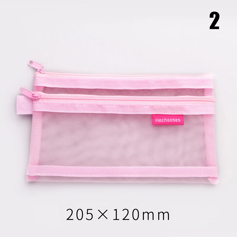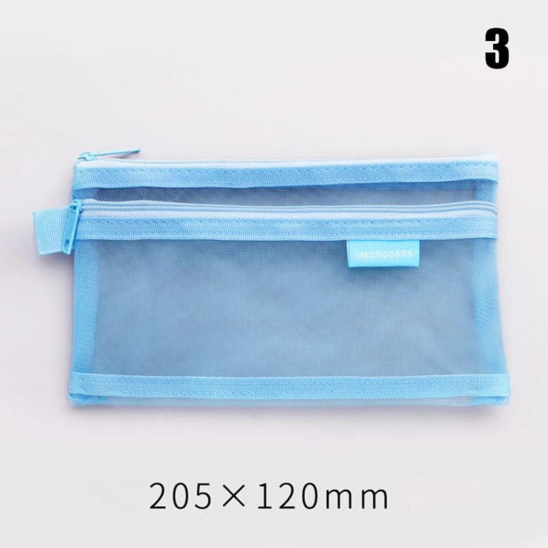 Простая прозрачная двойная Сетчатая Сумка, пенал, офисные студенческие Пеналы, нейлоновые школьные принадлежности, футляр для ручек