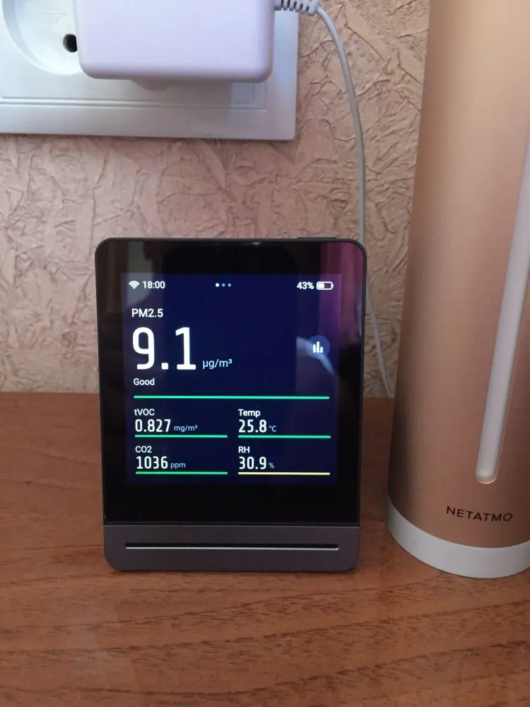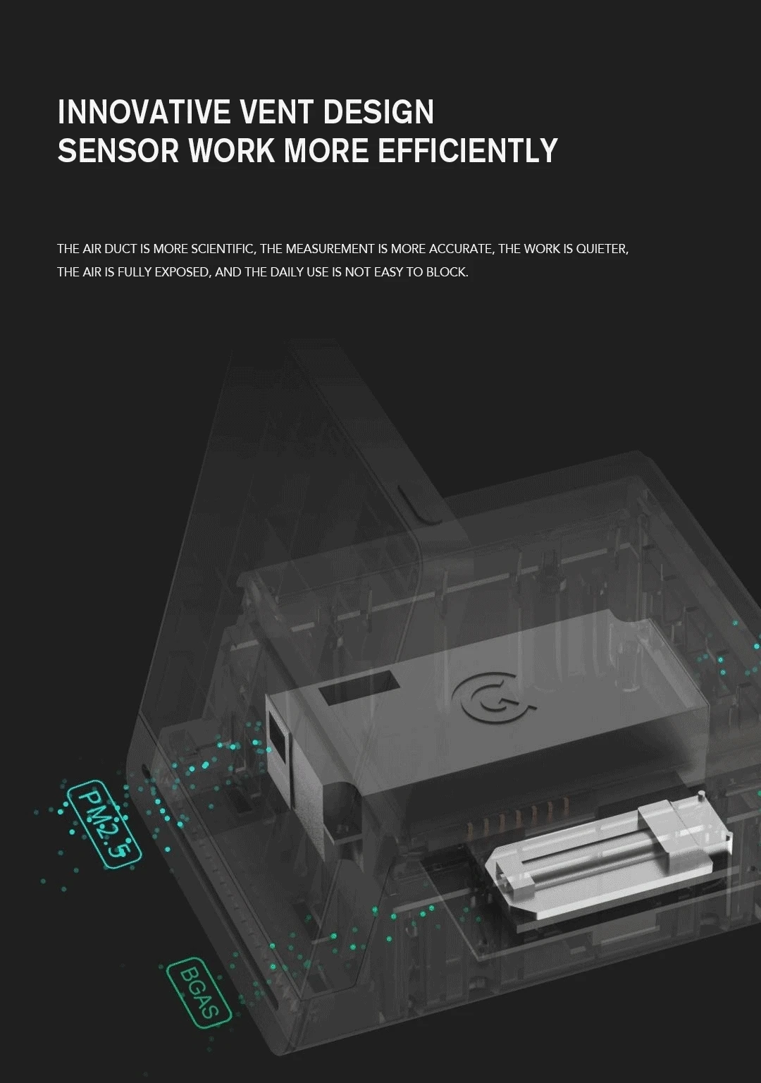 ● 3,1 дюйма разрешение 720x720 retina класс ultra clear IPS экран, 15 градусов угол возвышения ● Внутреннее использование четырехъядерных продуктов A7, алгоритм многомодовой компенсации, более точное измерение ● Емкостный сенсорный экран, автоматическая регулировка яркости, инновационный дизайн вентиляционного отверстия, более эффективная работа датчика ● Всесторонний мониторинг воздуха в помещении и отображения: температура и влажность, PM2.5, tVOC, значение углекислого газа ● Внешний воздух также можно увидеть с первого взгляда, поддерживая приложение Mijia интеллектуальное оборудование для улучшения качества воздуха ● Встроенный литий-ионный аккумулятор 2000 мАч; Источник питания: порт USB ● Материал из алюминиево-магниевого сплава