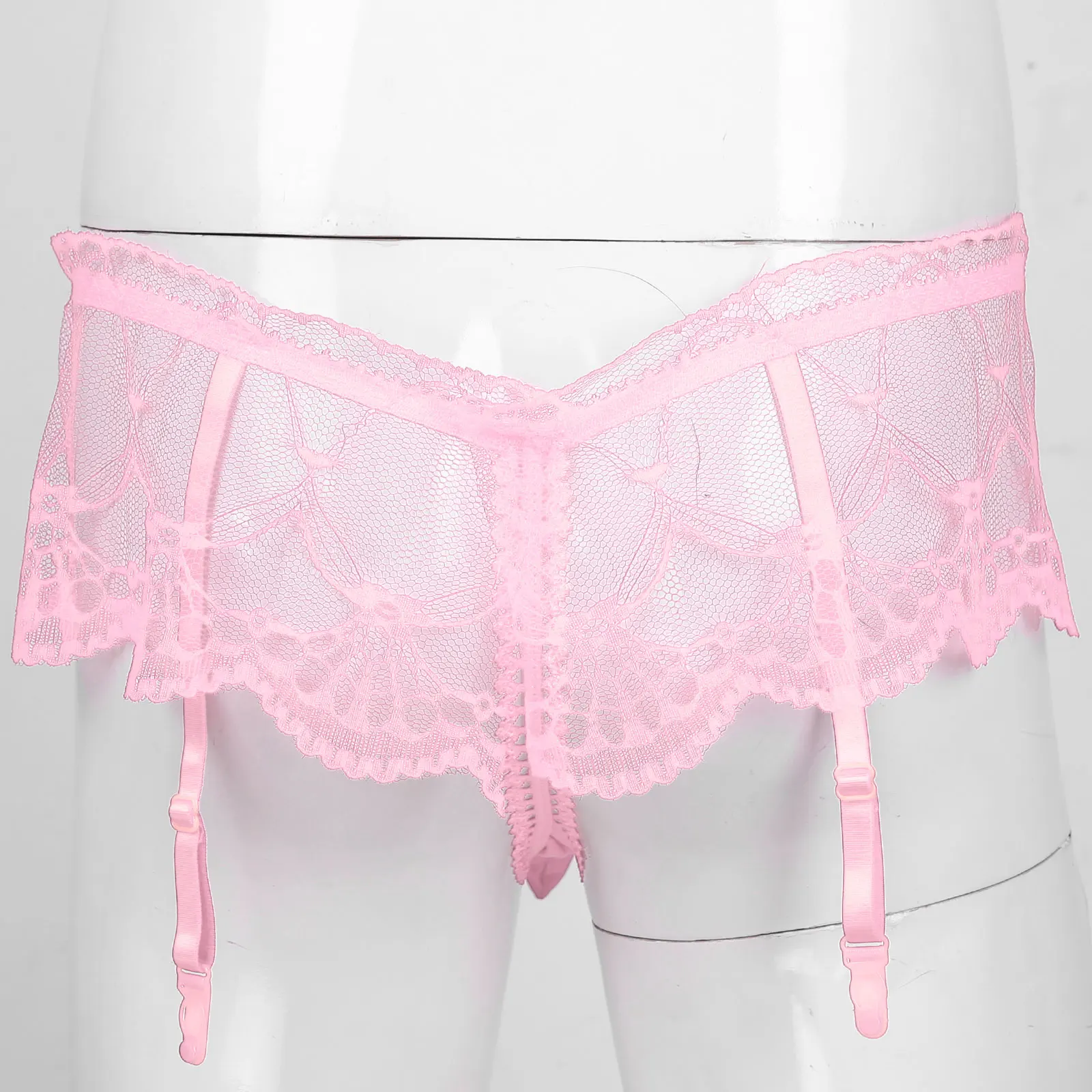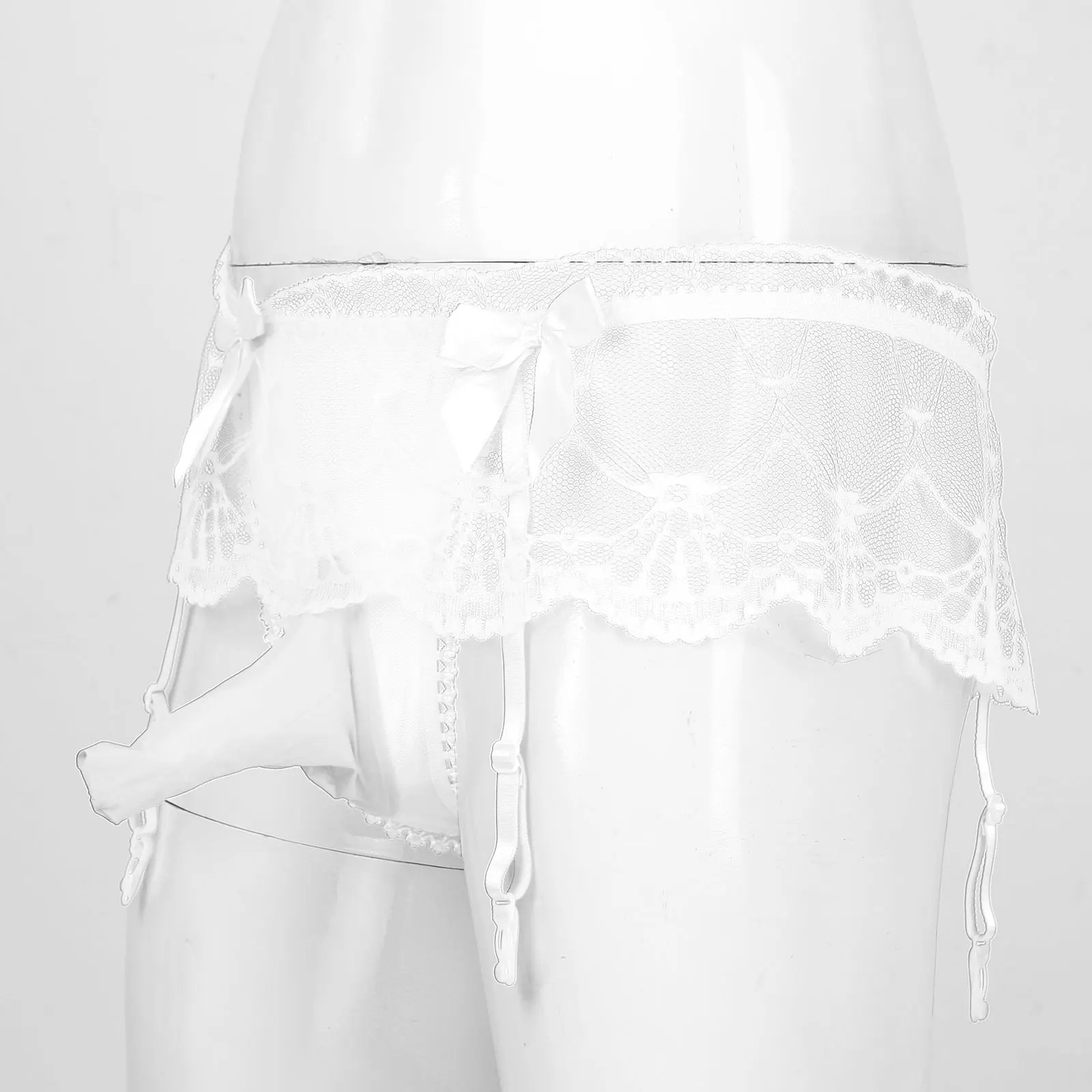 Особенности:Мужские сексуальные трусы с Т-образным вырезом.Кружевной Край, украшенный двумя маленькими бантиками спереди.Каждый из них имеет четыре эластичных ремешка с пластиковыми зажимами на талии, которые могут стягивать носки.Дизайн с низкой талией, эластичный пояс с мешочком, легко и удобно носить.Отлично подходит для ночного белья, хорошего настроения, для удовольствия, хороший подарок для вашего любимого.