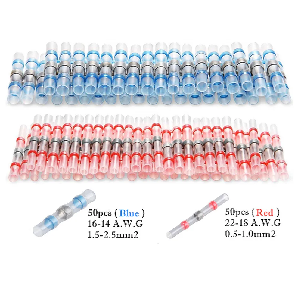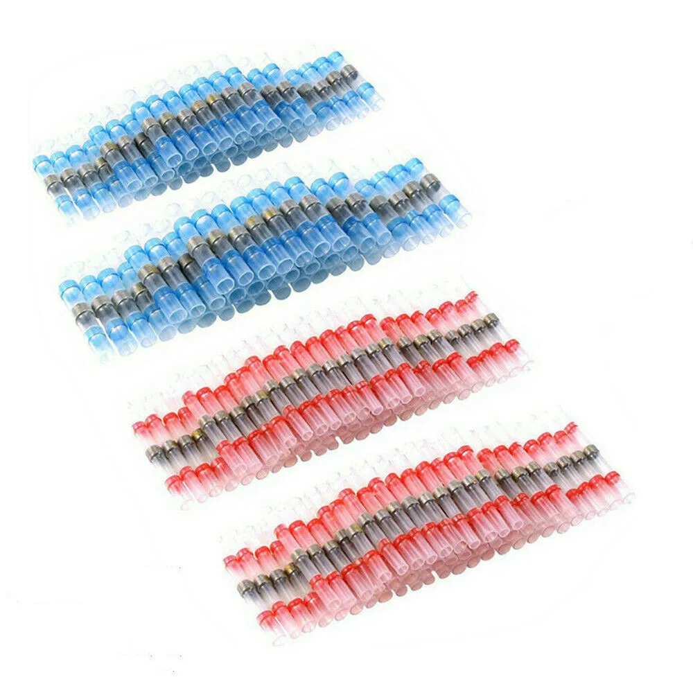 Термоусадочные паяльные втулки, изолированные водонепроницаемые стыковые соединители, припаянные клеммы для электрических проводов, красные, синие, 120 шт.