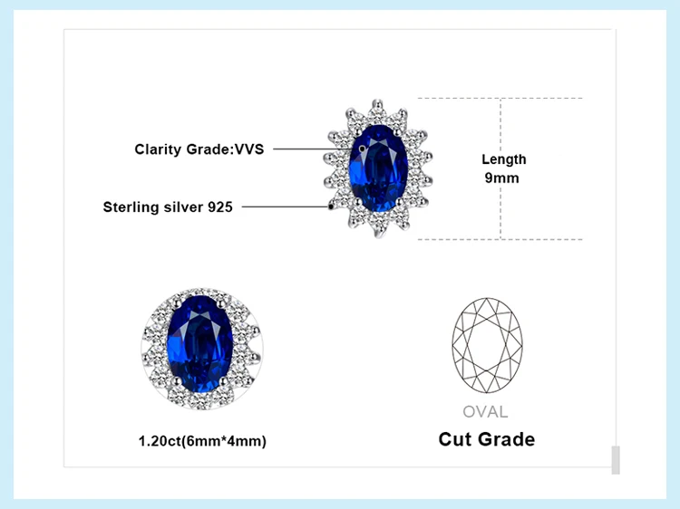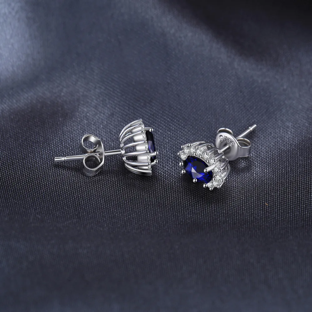 Женские серьги-гвоздики из серебра 925 пробы, с сапфиром