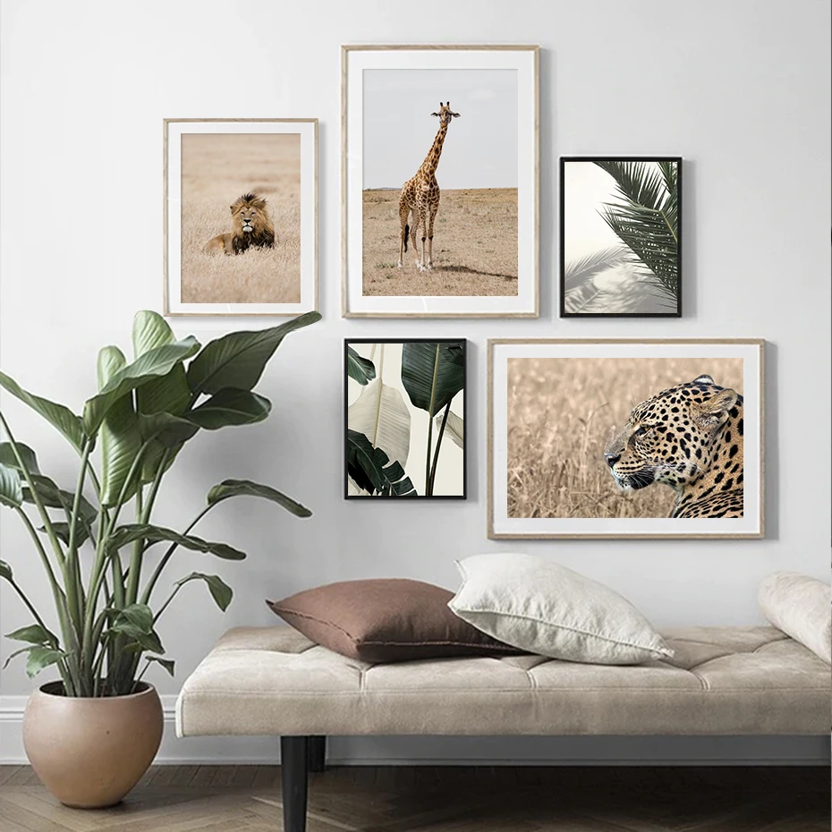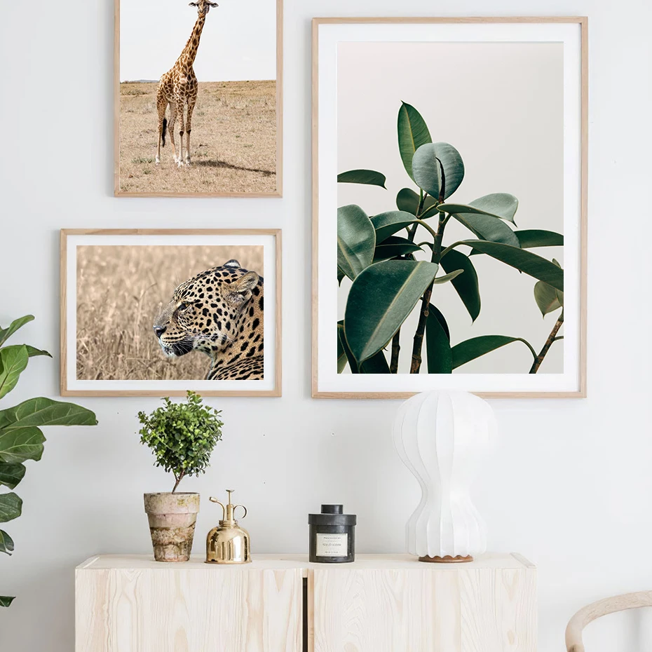Современные плакаты с африканскими дикими животными, зелеными листьями, картины на холсте, настенные картины, картины для гостиной, интерьер, домашний декор