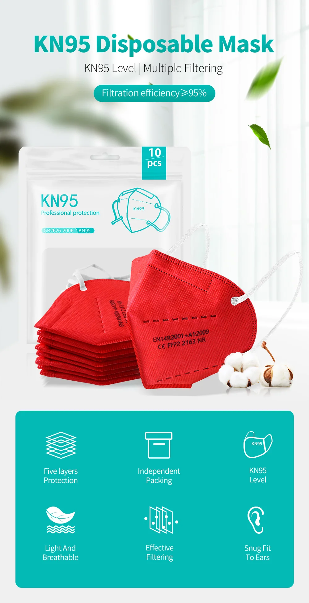 Красного цвета FFP2 маска 5-100 шт. KN95 Mascarillas уход за кожей лица маска респиратор FFP2mask 5 слоев защитный лицевой Mouthmask многоразовая маска