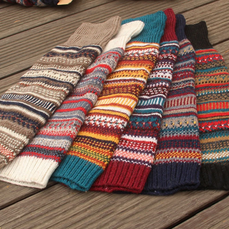 Женские теплые зимние гетры в стиле бохо Ретро японская форма JK вязаные крючком высокие длинные носки в ночном стиле