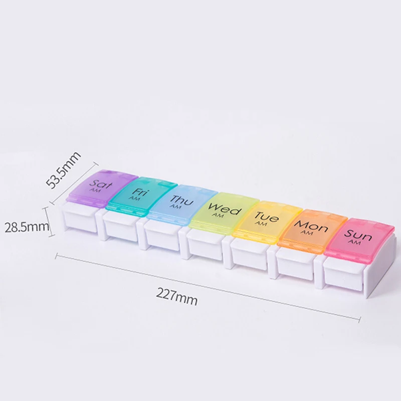 1. Коробка для таблеток с 7 отсеками, верхняя и нижняя отделены и раздельное хранение, здоровая и безопасная.2. Прозрачный корпус, предметы внутри прозрачные с первого взгляда, точный доступ и использование, удобно и быстро.