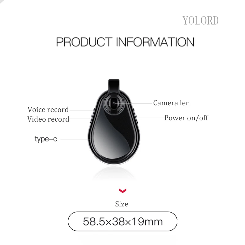 Мини-камера 1080P, носимый видеорегистратор Espia с зажимом для дви...