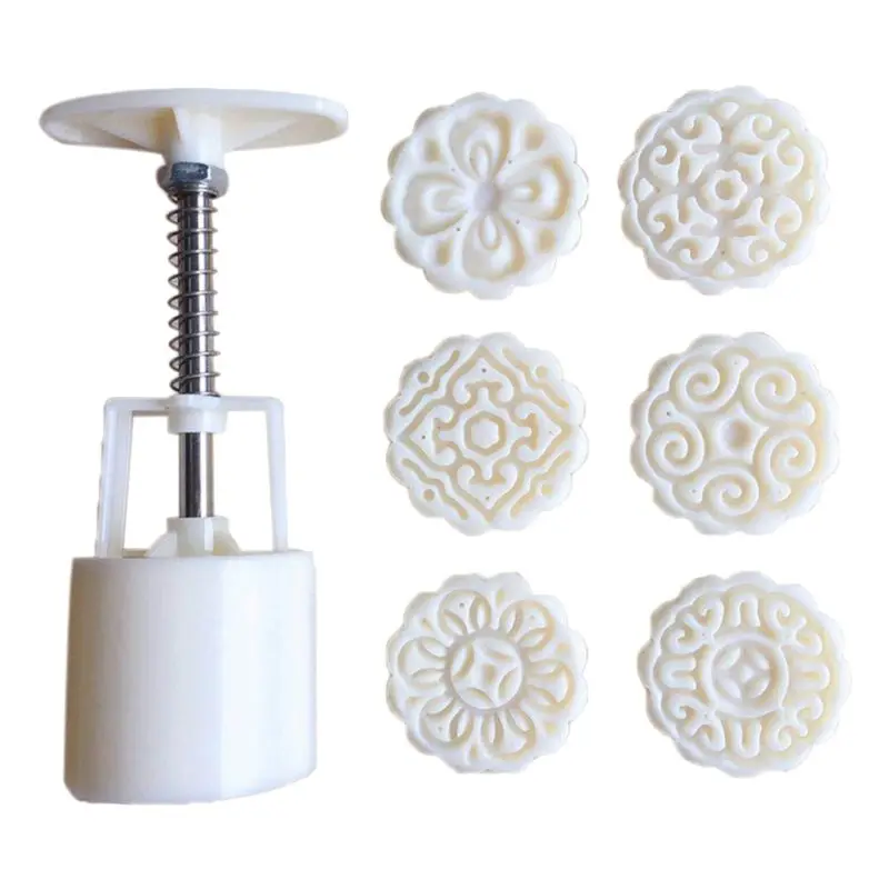6 шт 3D цветы марки 50g круглая форма для лунного пряника пресс-форм баррель Луны форма для украшения торта Кондитерские инструменты Mooncakes ручной DIY инструмент для выпечки