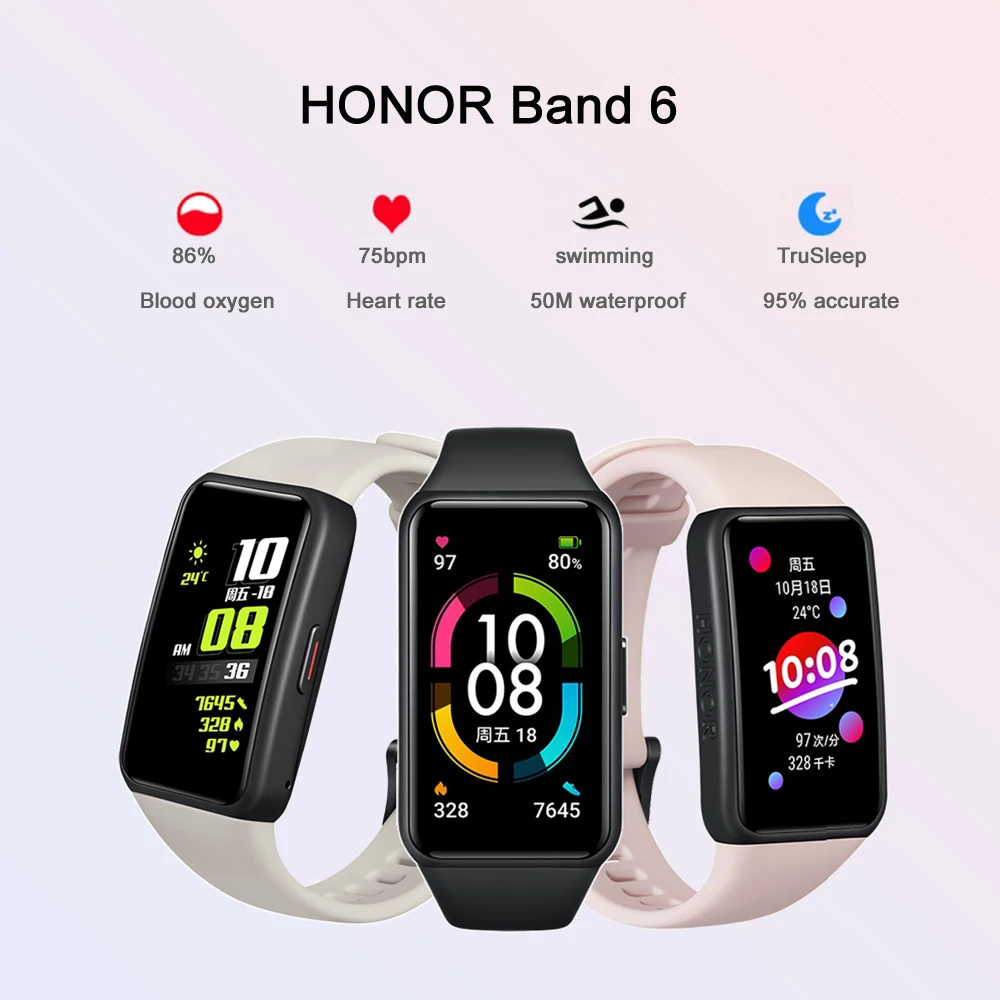 Honor Band 6 смарт часы, фитнес браслет AMOLED дисплей 1,47 дюйма, умные часы 14 дней автономной работы, пульсометр, фитнес-трекер сна
