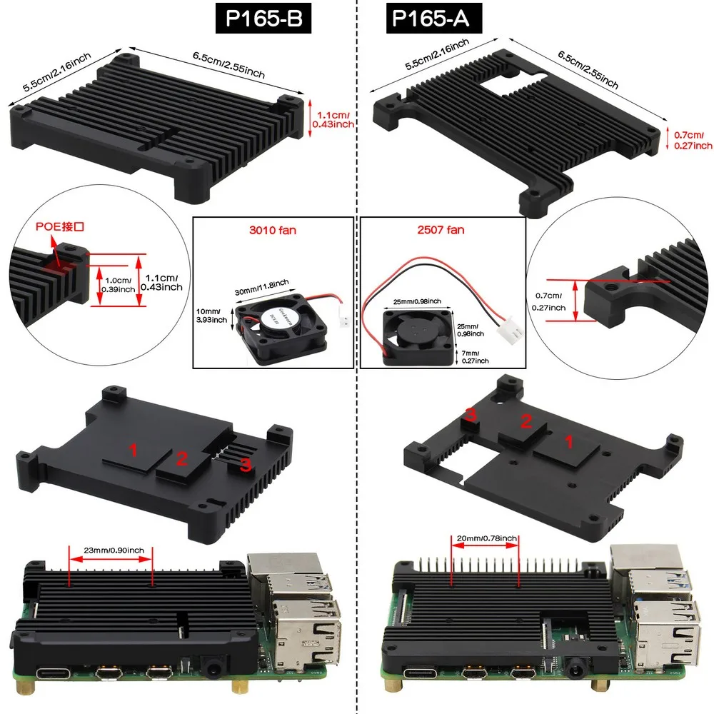 Плата расширения Raspberry Pi 4B, 11 мм, встроенный радиаторP165-B радиатора для Raspberry Pi 4 Model B и Pi 4, с поддержкой платы POE