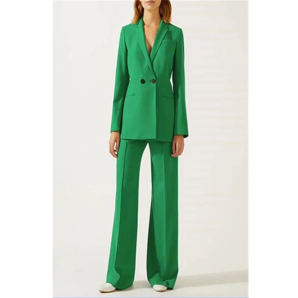 Костюм брючный женский двубортный, Модный жакет с длинным рукавом, пиджак с воротником-стойкой, зеленый