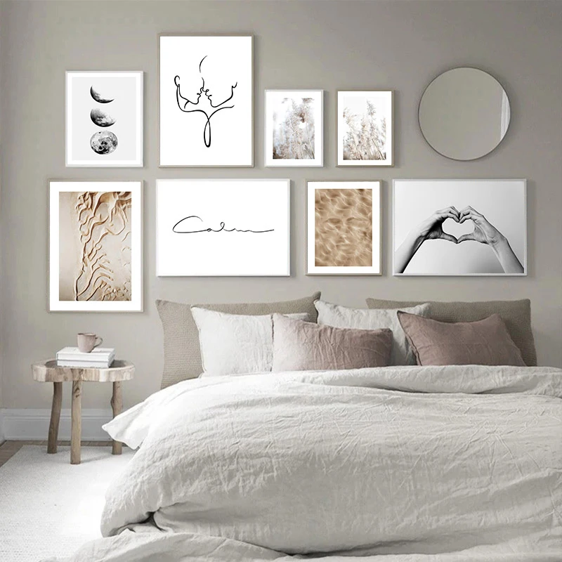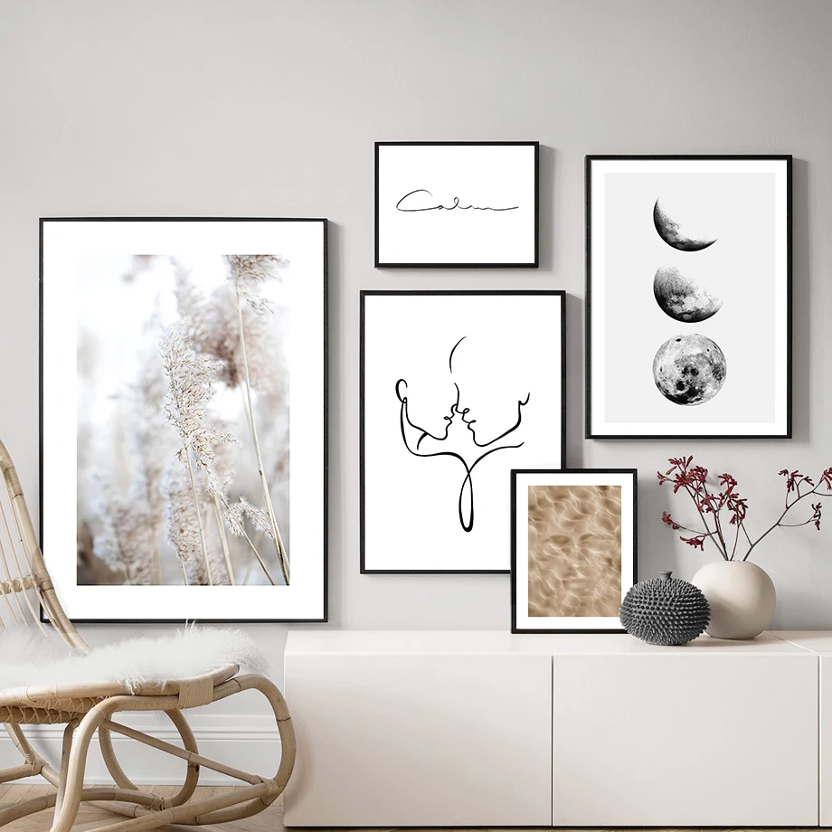Скандинавская бежевая тростниковая трава, картины на холсте, птицы,...