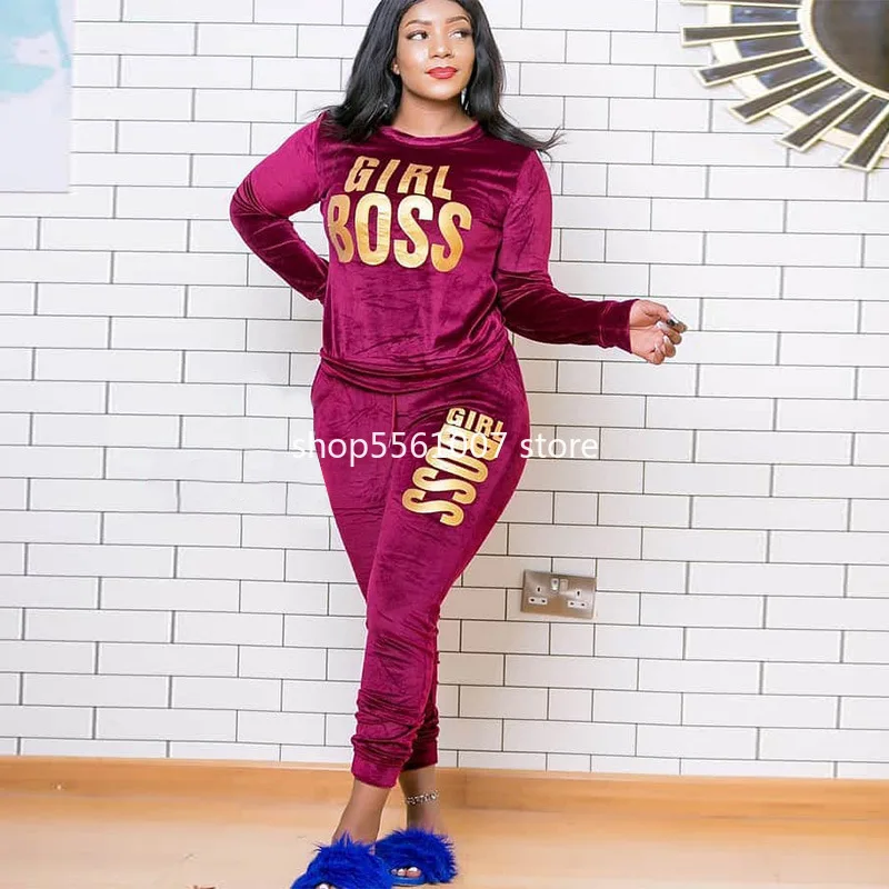 Женский бархатный костюм с надписью размера плюс, Женский комплект ...