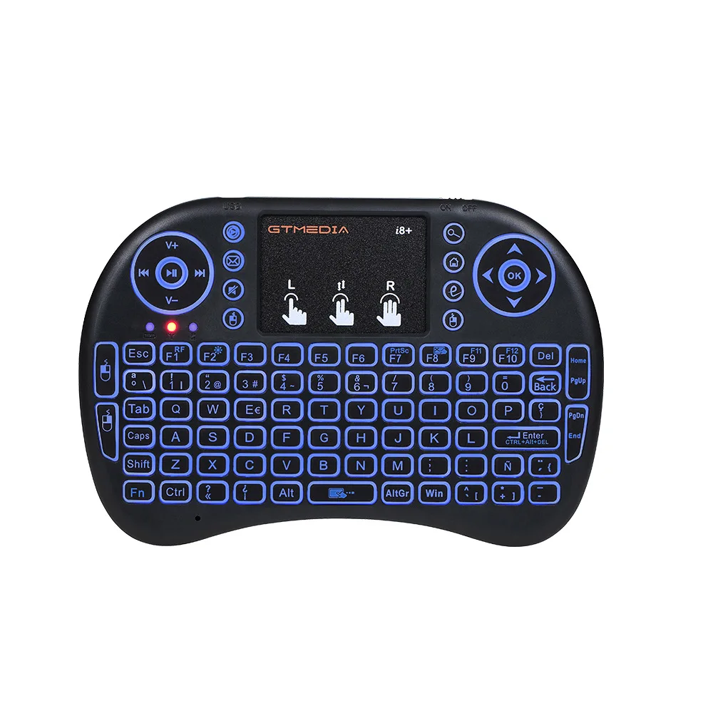 Если вы покупаете ТВ-приставку с 7-цветной клавиатурой с подсветкой, в посылка вы можете получить клавиатуру I8, которая поддерживает английский и русский так: (на клавишах есть соответствующие символы) метод работы: 1. Подключите USB сенсор в USB-порт компьютера, телевизора или андроид приставки; 2. Подождите 20-30 секунд для сопряжения системы; 3. Используйте клавиатуру для удаленного 4. FN + F2 для открытия и переключения цвета подсветки Примечание. Сама клавиатура не имеет батареи, пожалуйста, вставьте ее в батарею AAA