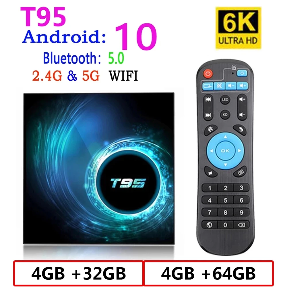 Оригинальная Smart TV приставка T95, Android 10,0 для Youtube HD 6K Android TV приставка для Google голосовой ассистент Smart TV приставка PK X96 H95 MAX
