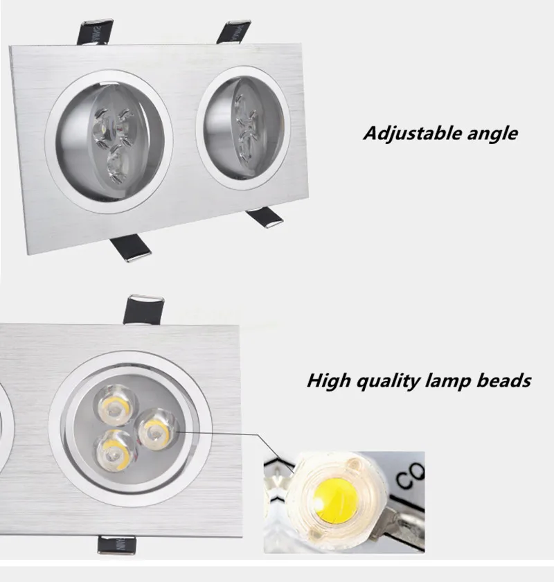 Квадратная Одиночная двойная светодиодная потолочная приглушаемая лампа Epistar, встраиваемый Точечный светильник на потолок, 6 Вт10 Вт12 Вт14 Вт20 Вт28 Вт, AC110V-220V