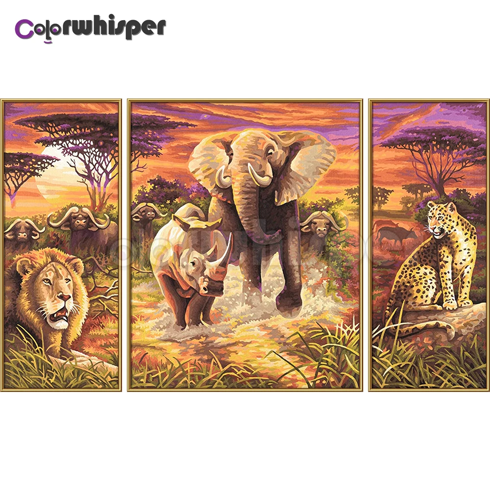 Картина из страз квадратнаякруглая, слон, Лев, лес, животные, алмазная вышивка, настенное искусство Z1736, 3 шт.