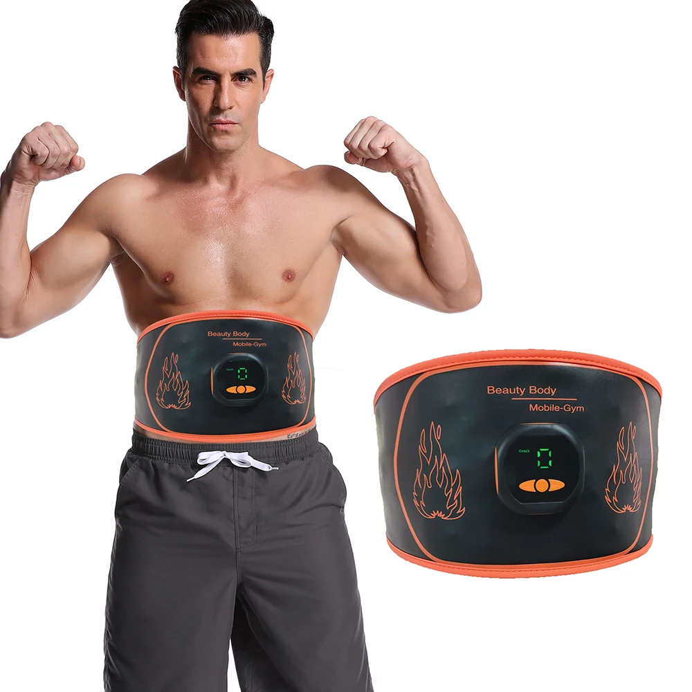 EMS для похудения с зарядкой через USB, умный светодиодный электрический стимулятор мышц живота, вибрирующий массажер для талии