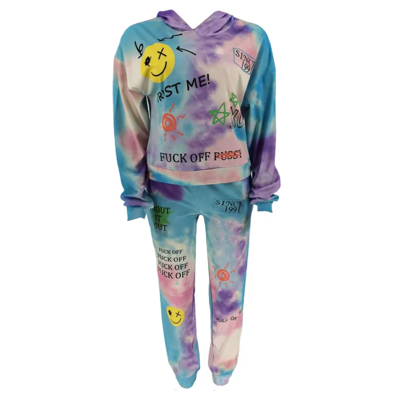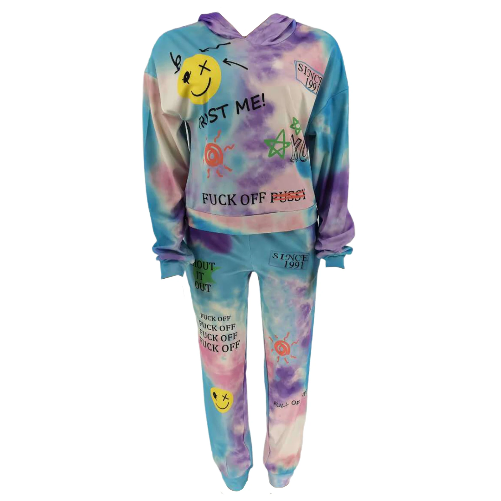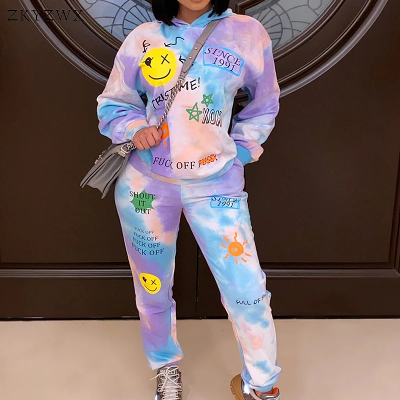 Толстовки с капюшоном для женщин, спортивный костюм, комплекты из 2 предметов, теплый зимний комплект со смайликом из топа с длинными рукавами и спортивные штаны отдыха Одежда вареный наряды