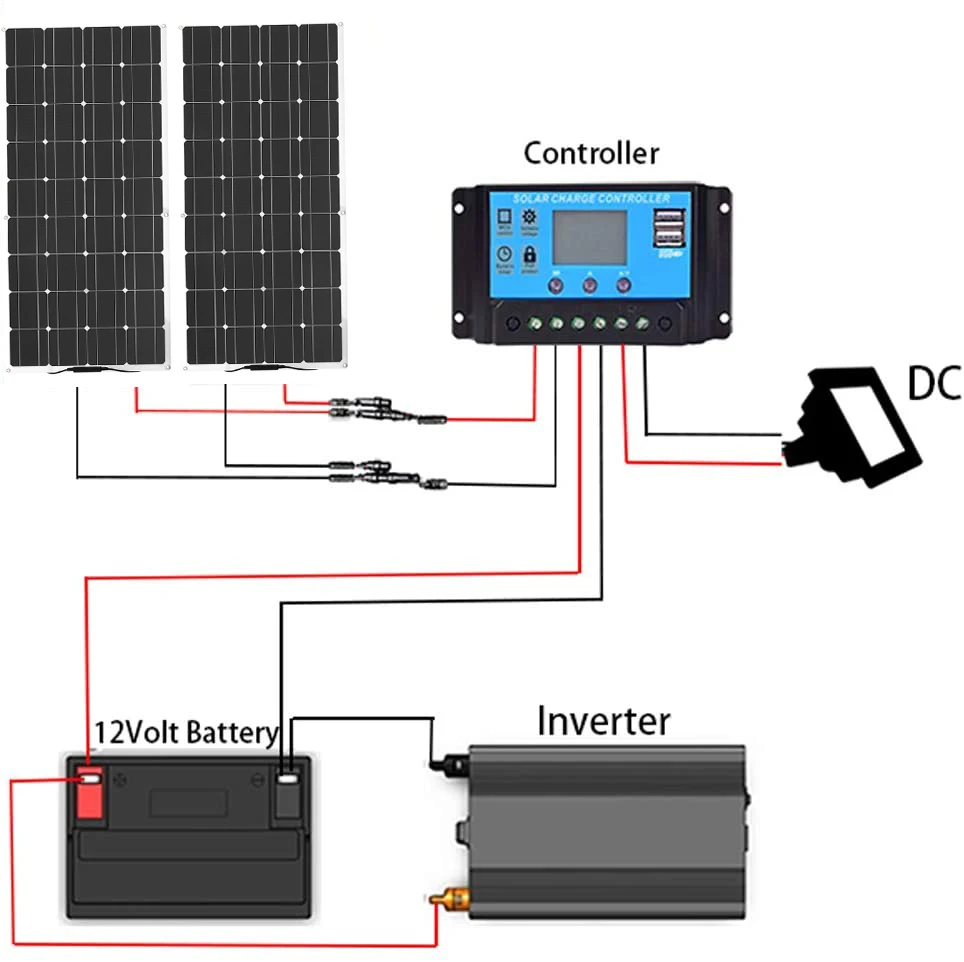 При использовании аккумулятора 12V Используйте параллельное соединение; При использовании аккумулятора 24V используйте два последовательных соединения. Пожалуйста, установите солнечную панель на гладкую поверхность с хорошим солнечным светом и без тени и старайтесь не устанавливать ее на неровных участках. Солнечные панели можно закрепить с помощью клея или болтов.