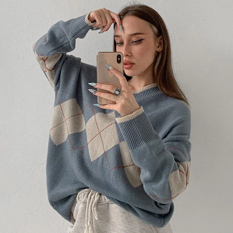 2021 модные вязаные пуловеры для женщин с длинным рукавом с рисунко...