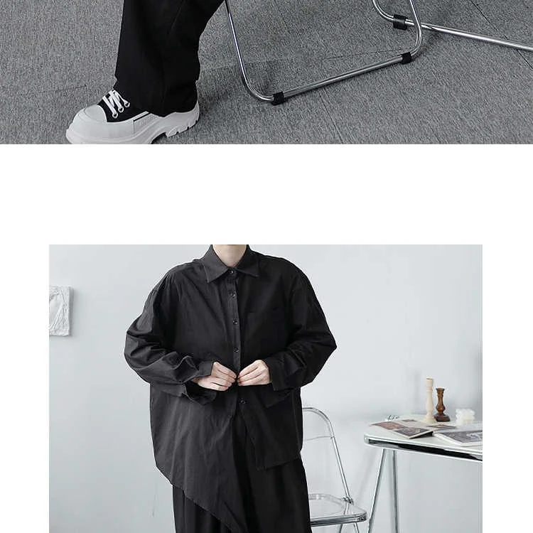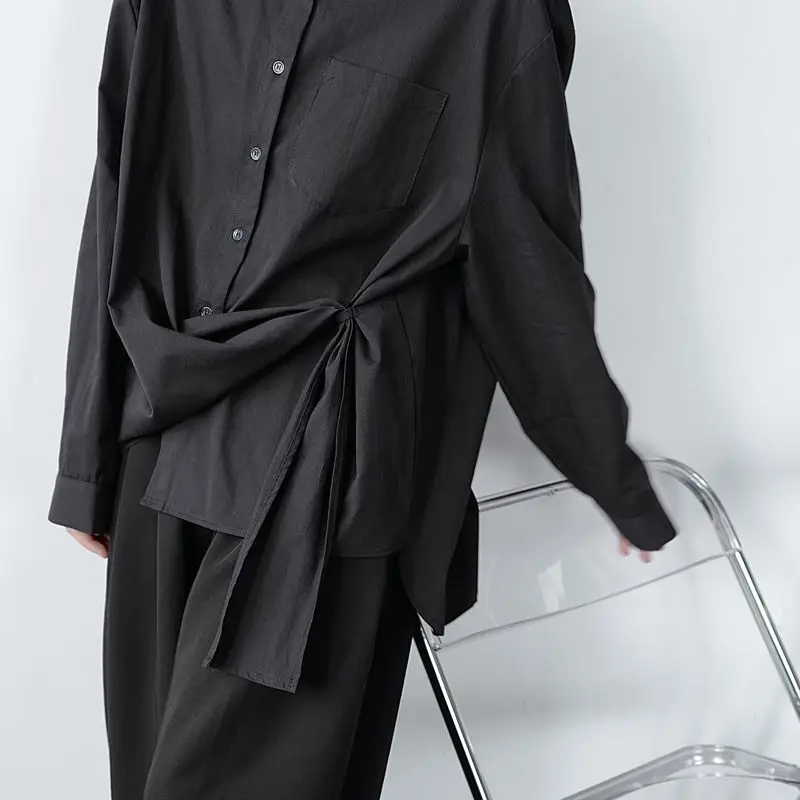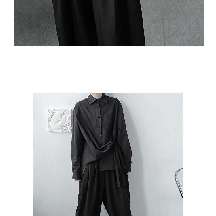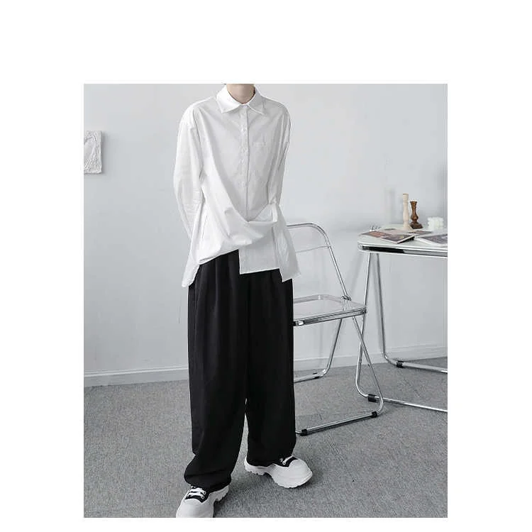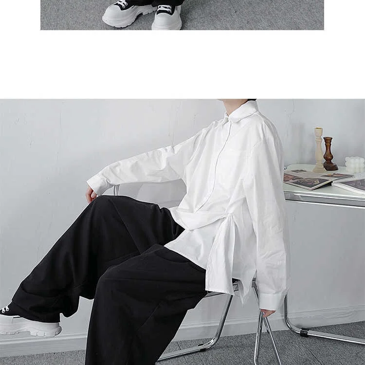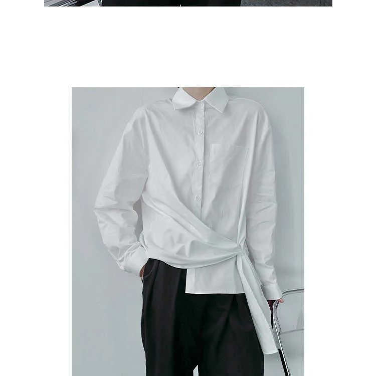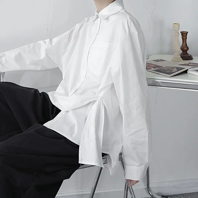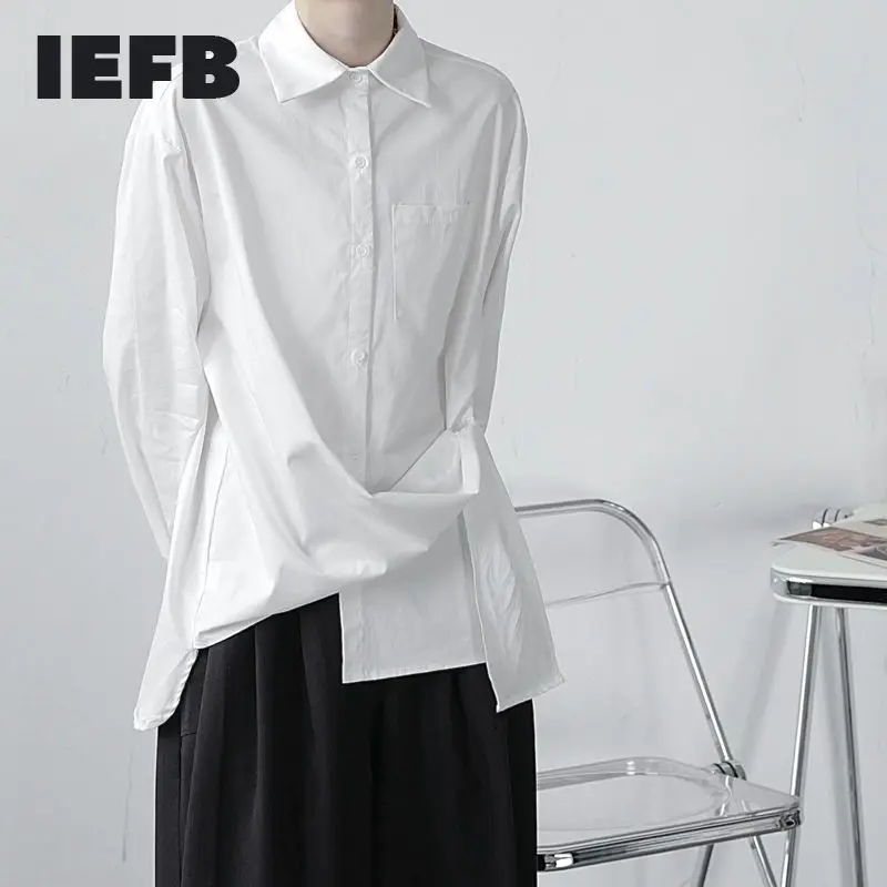 Рубашка IEFB Мужская Асимметричная на пуговицах, новая простая блуза оверсайз, демисезонная конструкция, черная белая, на шнуровке, 9Y4643