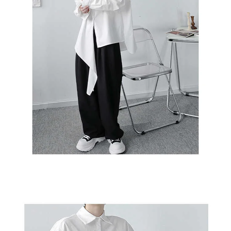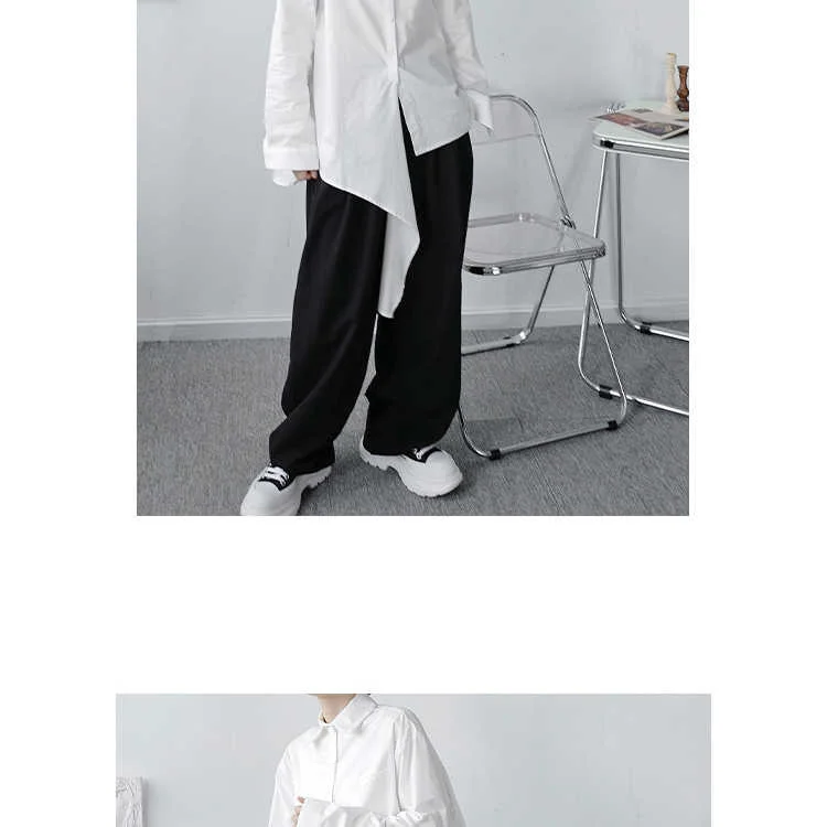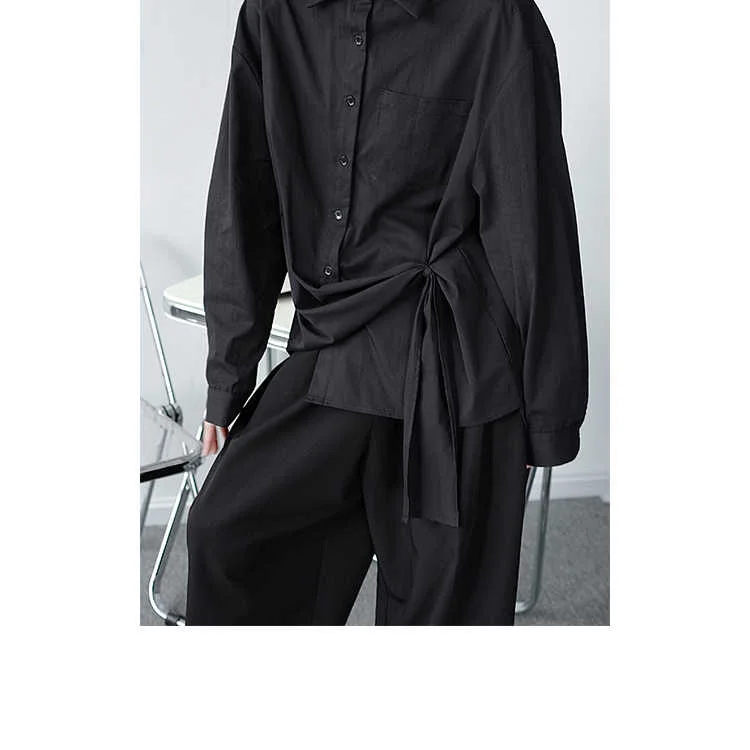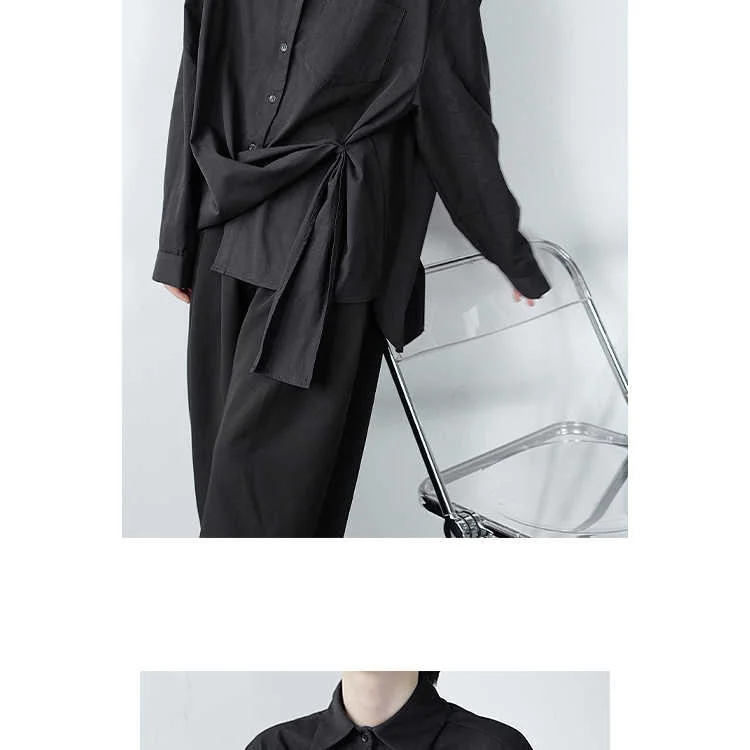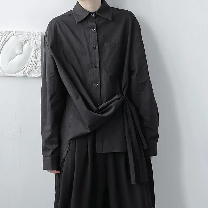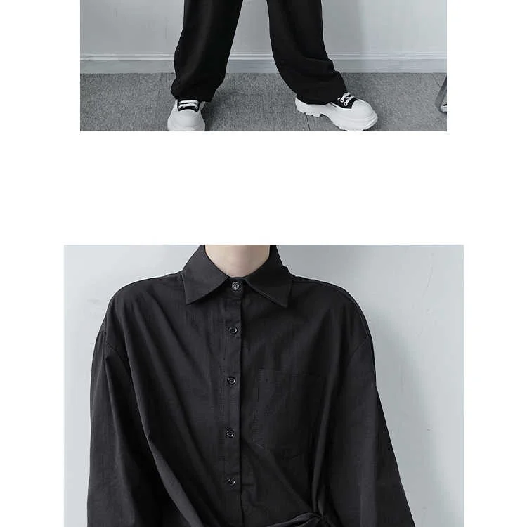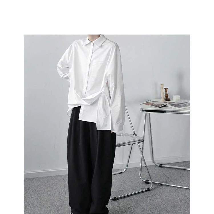 Рубашка IEFB Мужская Асимметричная на пуговицах, новая простая блуза оверсайз, демисезонная конструкция, черная белая, на шнуровке, 9Y4643
