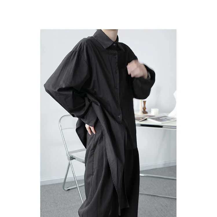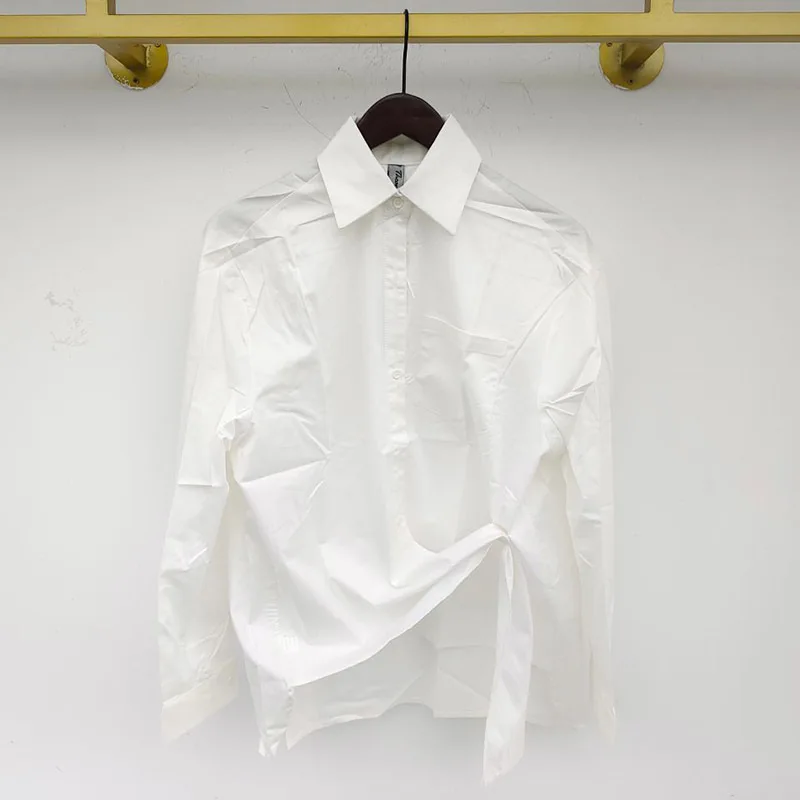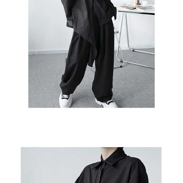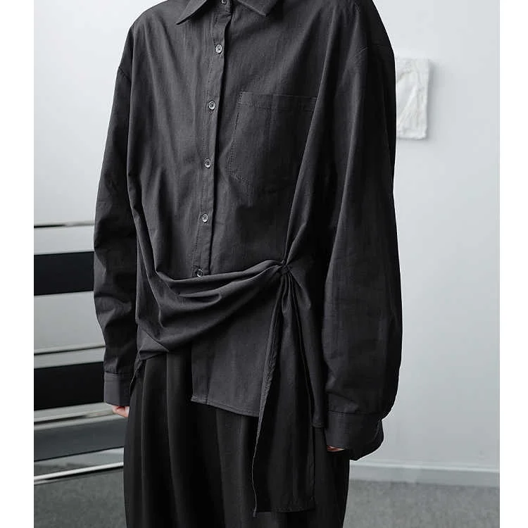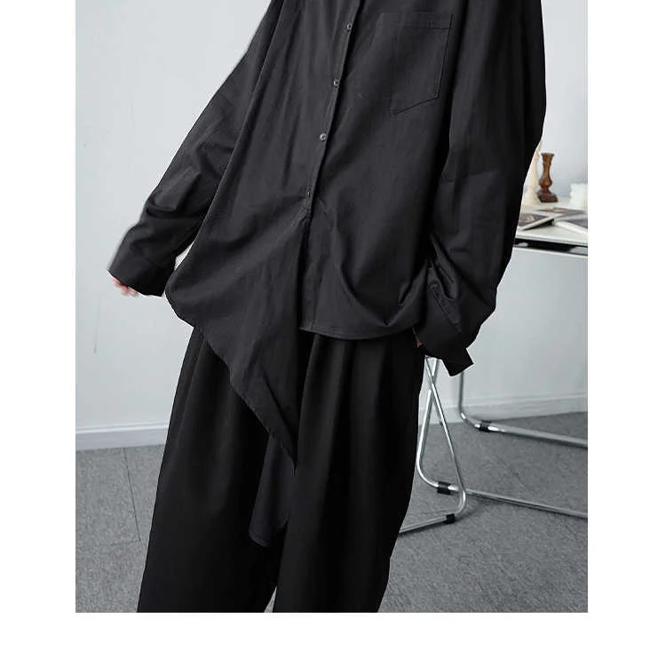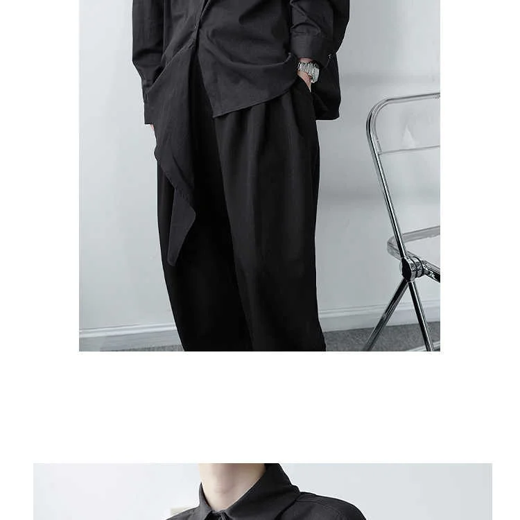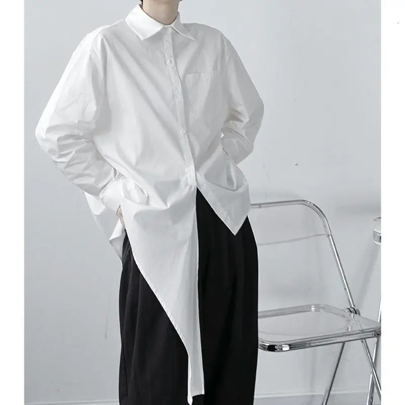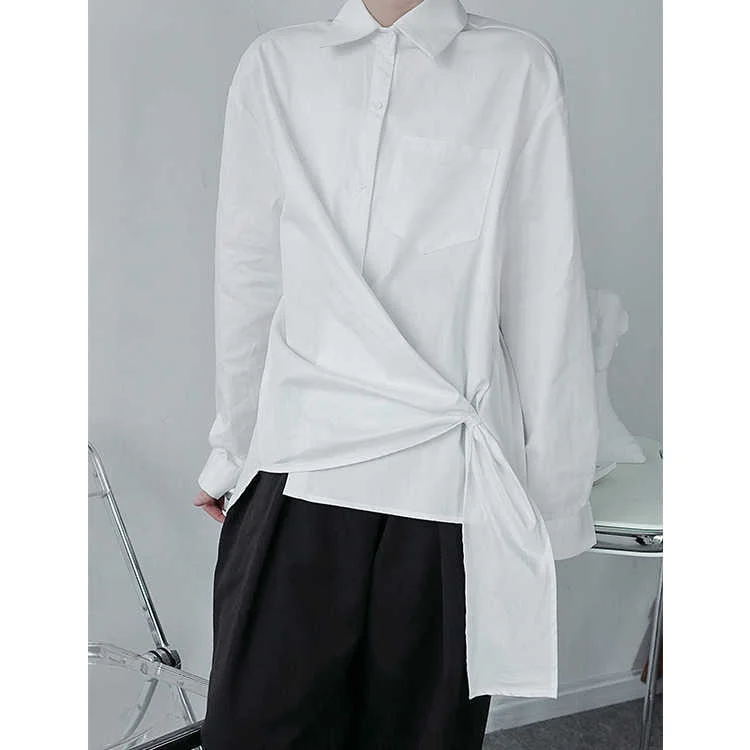 Рубашка IEFB Мужская Асимметричная на пуговицах, новая простая блуза оверсайз, демисезонная конструкция, черная белая, на шнуровке, 9Y4643