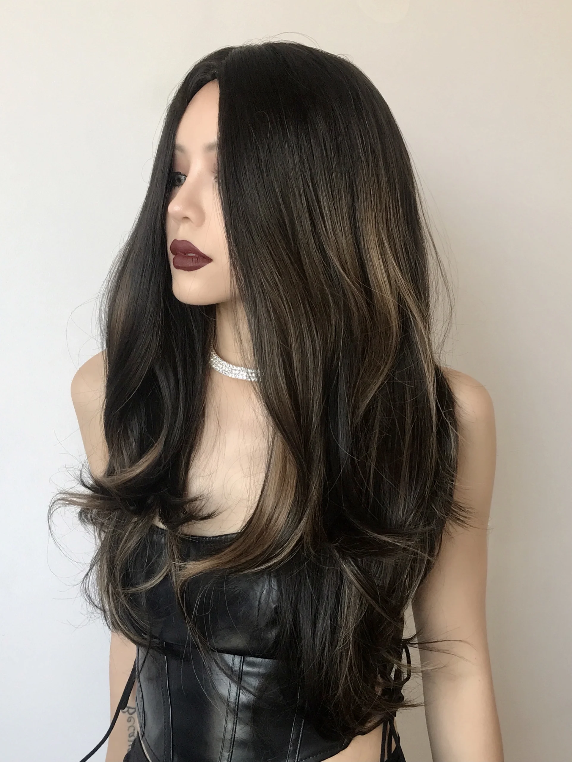Длинный черный, коричневый, золотистый, медовый волнистый парик LOU...