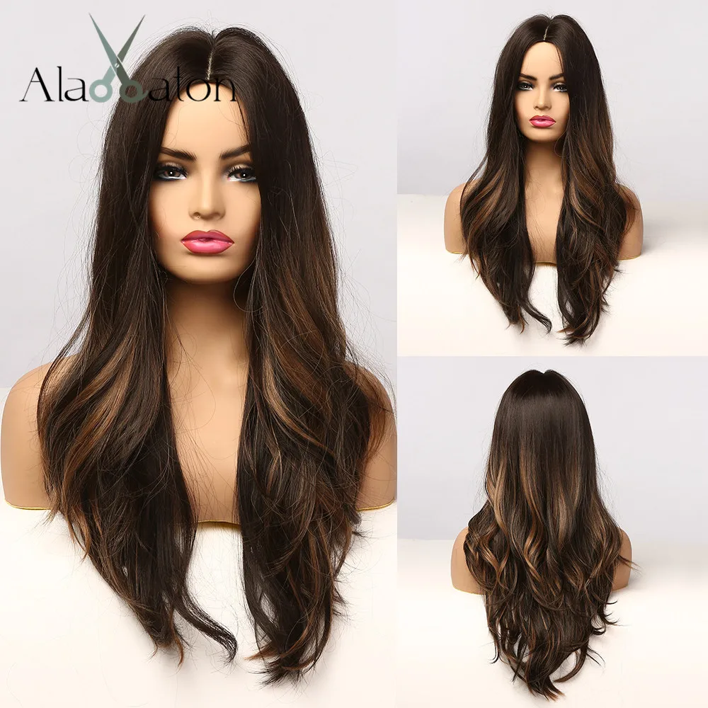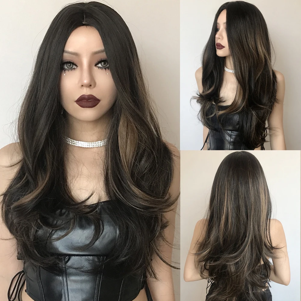 Синтетические парики длинные натуральные волнистые парики хайлайтер...