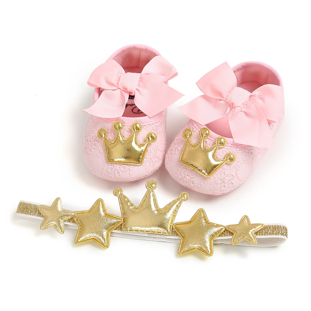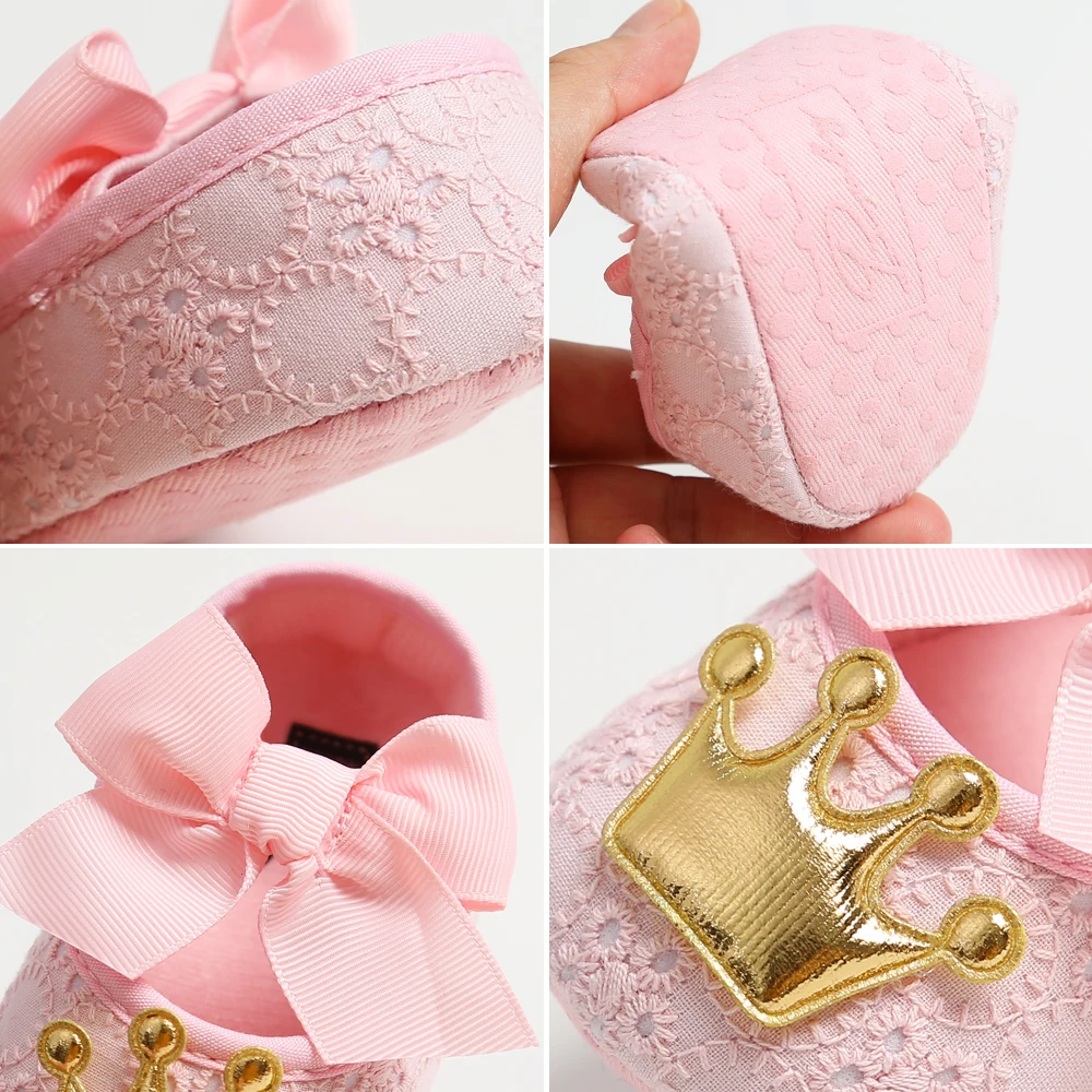 Мягкая обувь FOCUSNORM для новорожденных девочек 0-18 месяцев, хлопковая обувь с короной обувь для принцессы с бантом, обувь для первых шагов