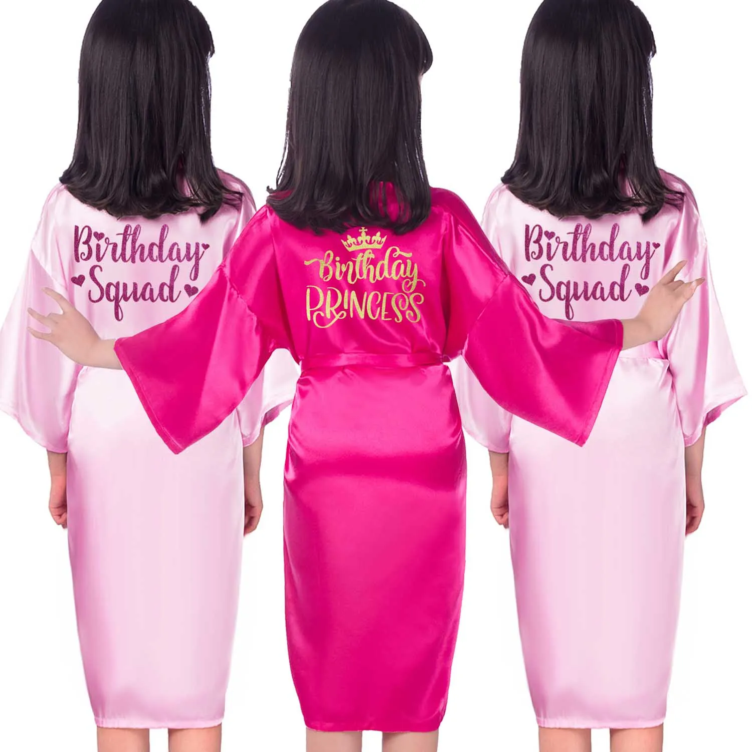 Халат принцессы на день рождения, одежда для сна для девочек на день рождения, атласная с золотымирозовыми блестками для дня рождения, вечеринки, спа, выпускного вечера