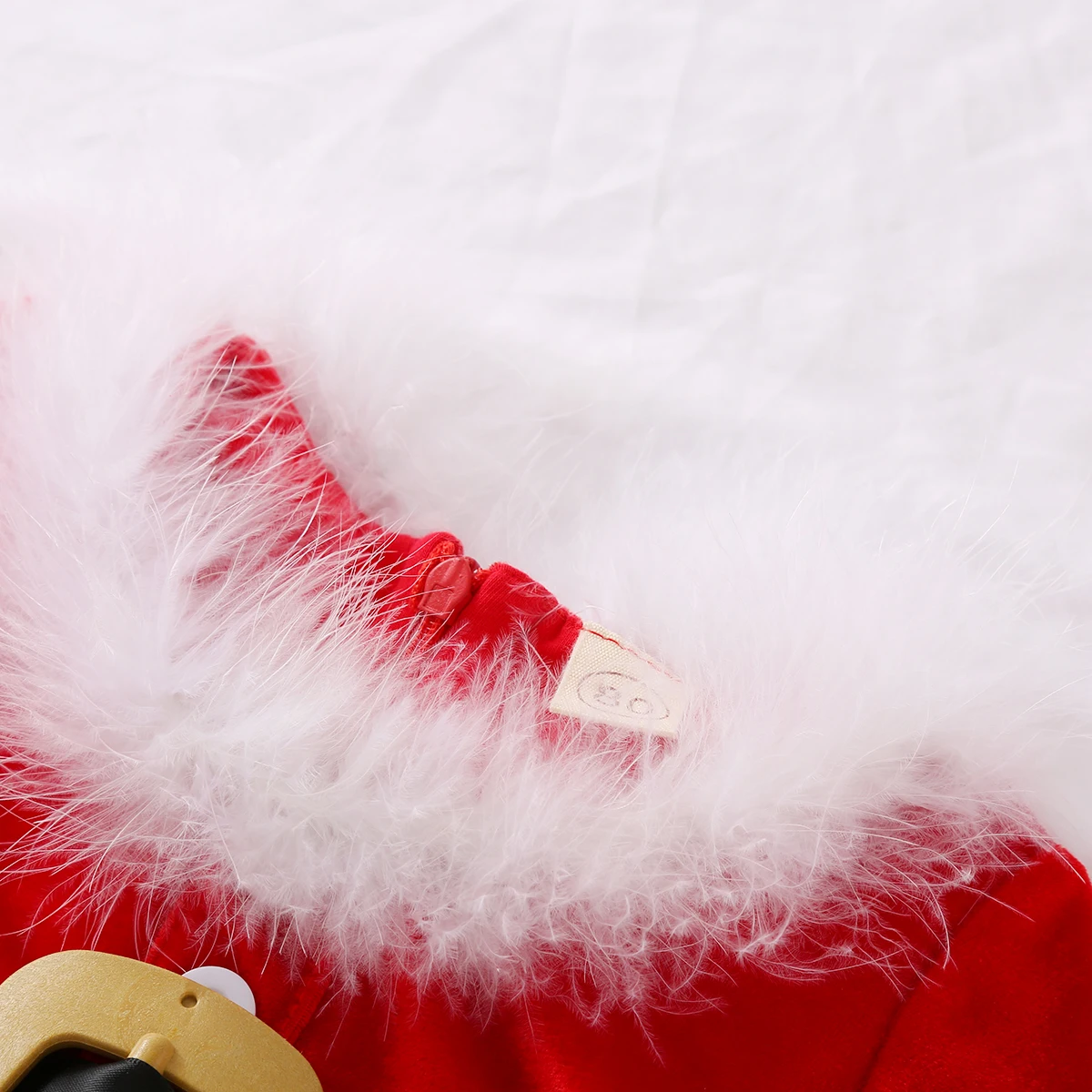 Детские Рождественские нарядыФлисовая красная юбка с длинными рукавами и круглым вырезом и высокой талией с молнией сзади для маленьких девочекТакая милая одежда для празднования Рождества вашего ребенка!